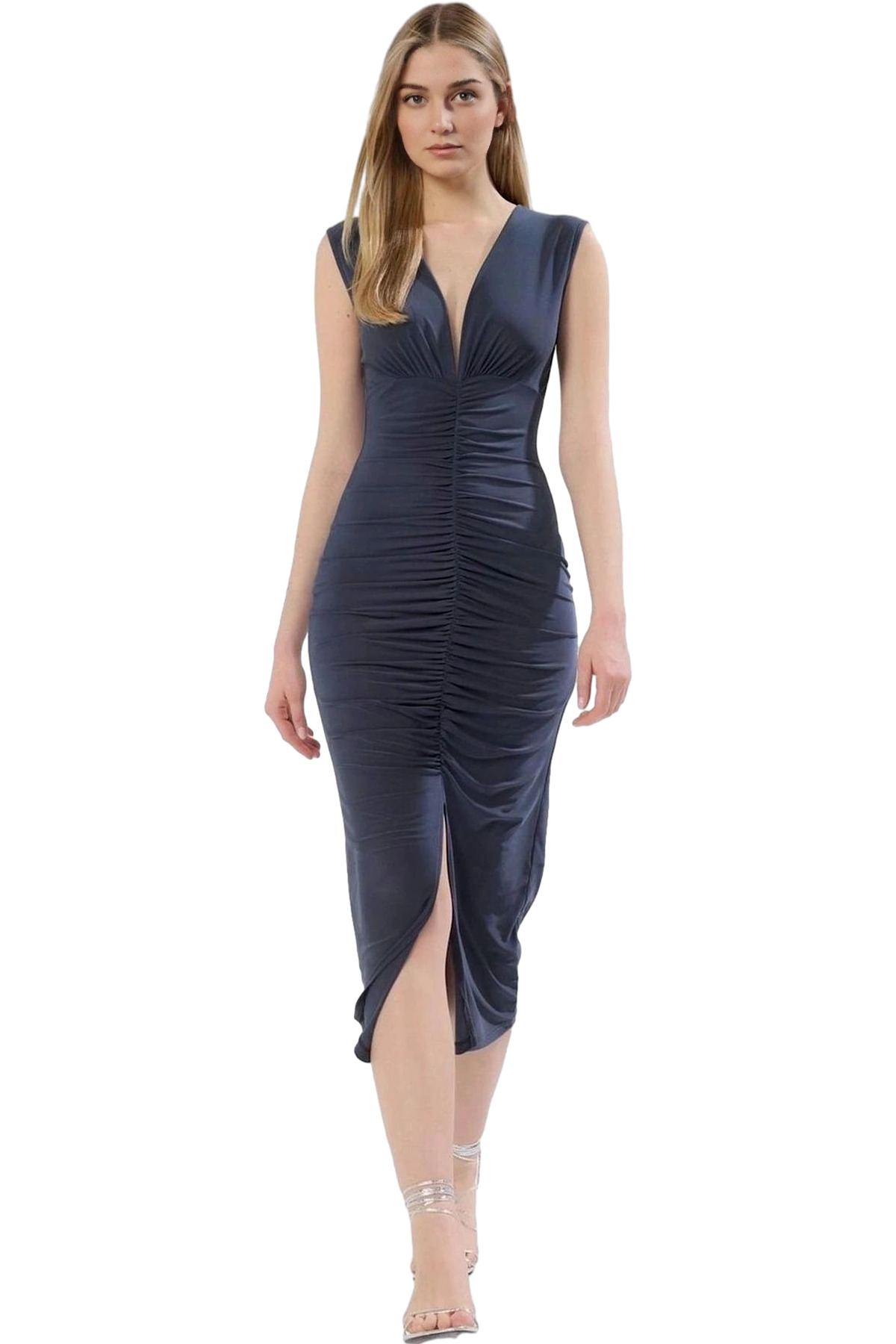 Bodycon Kalıp Midi Elbise Örme Kumaş Choker Yaka Günlük Şık Görünüm Trend Tasarım Seçkin Malzeme