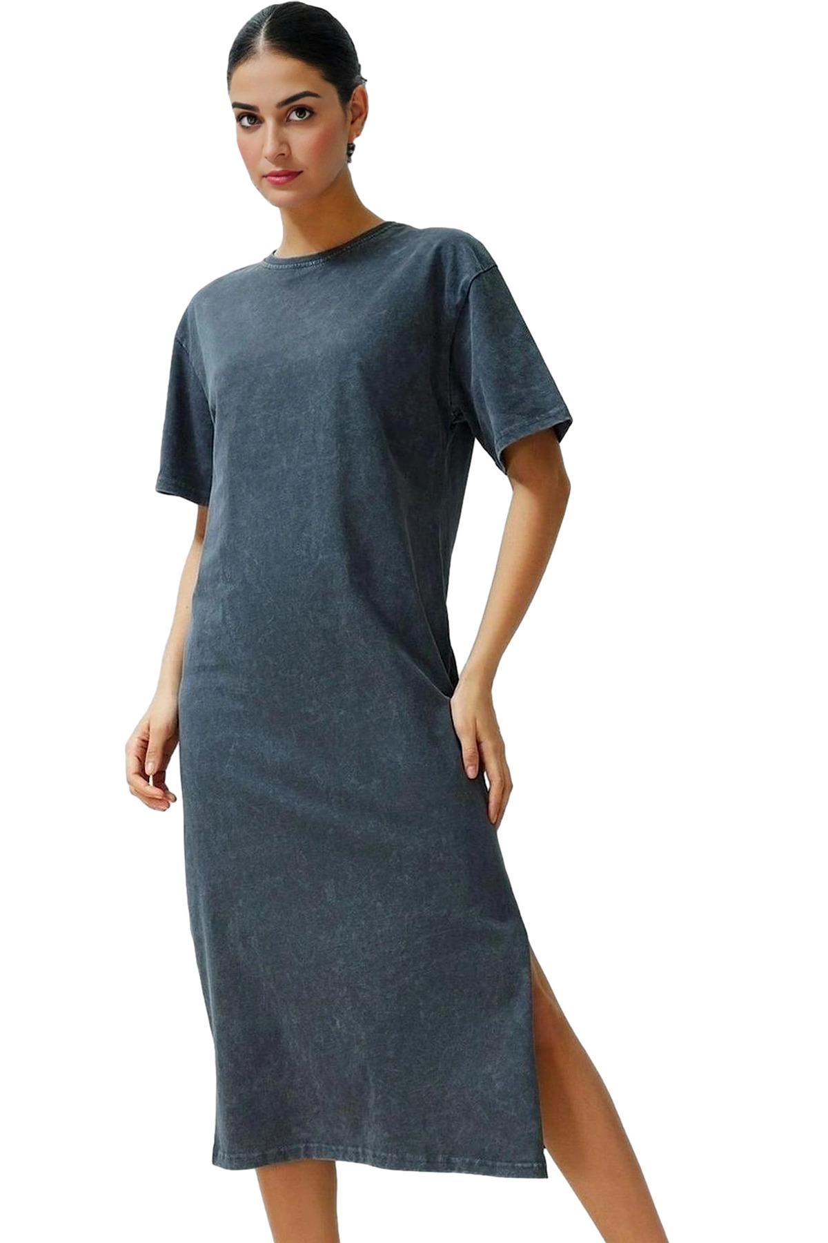 Pamuklu Örme Midi T shirt Elbise Rahat Şık ve Günlük Özel Tasarım Konforlu Kesim Yüksek Kalite