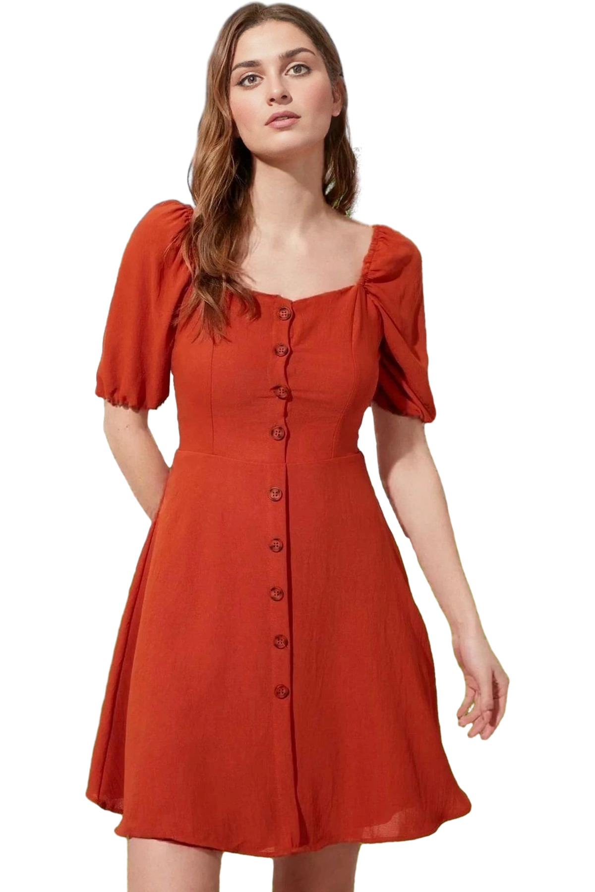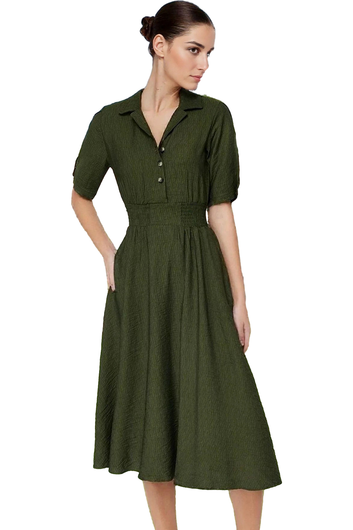 A Kesim Gipeli Midi Elbise Balon Kol Viskoz Günlük Kombin Uzun Ömürlü Özenle Seçilmiş Mükemmel Uyum