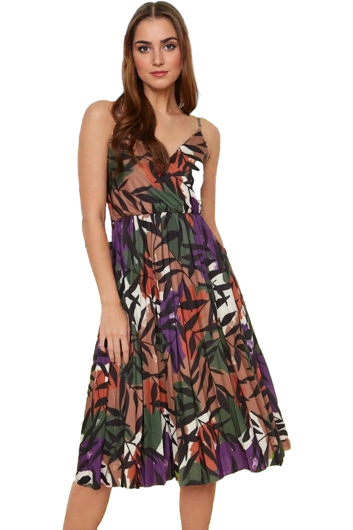 Yazlık Casual Ayarlanabilir Askılı Pileli Midi Elbise Seçkin Malzeme Yüksek Kalite Rahat Kullanım