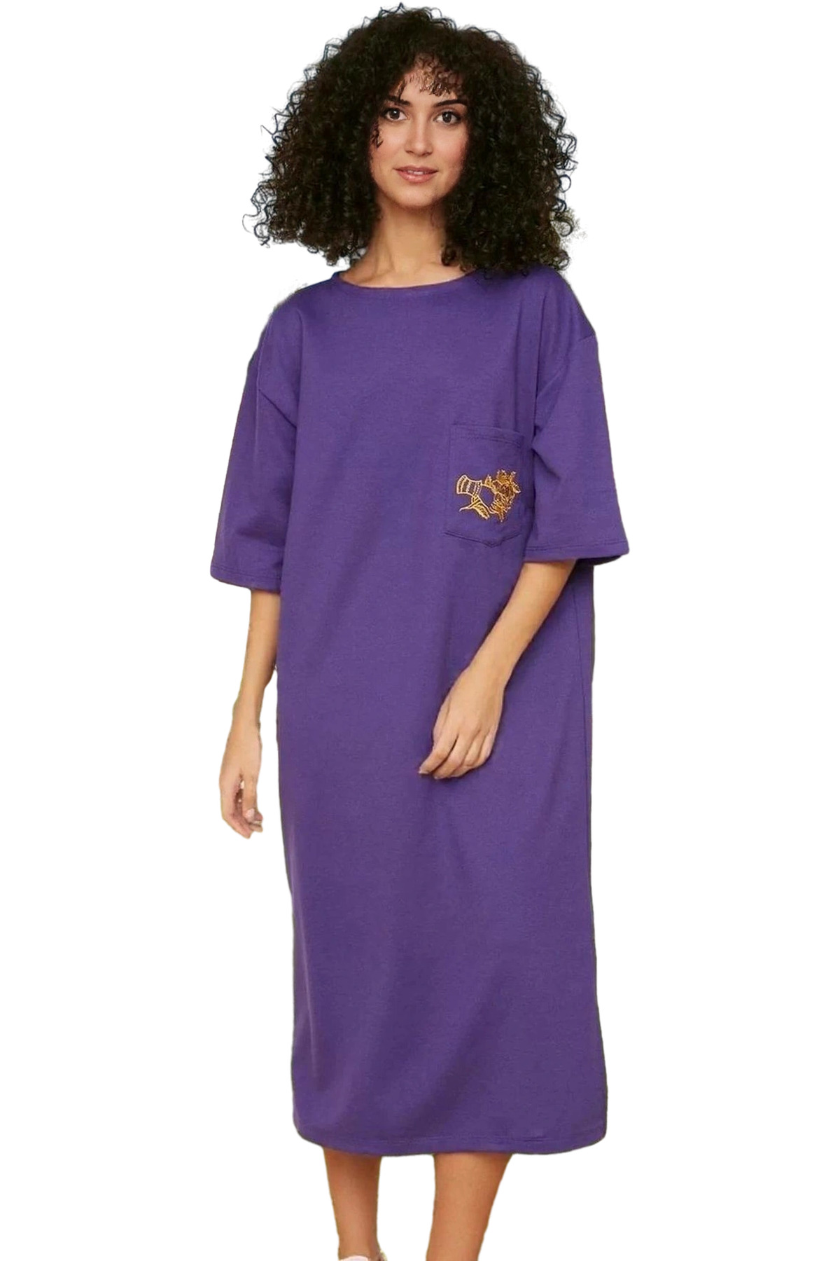 Rahat Kesim Bisiklet Yaka Nakışlı Midi Örme Elbise Dayanıklı Malzeme Trend Tasarım Rahat Kullanım