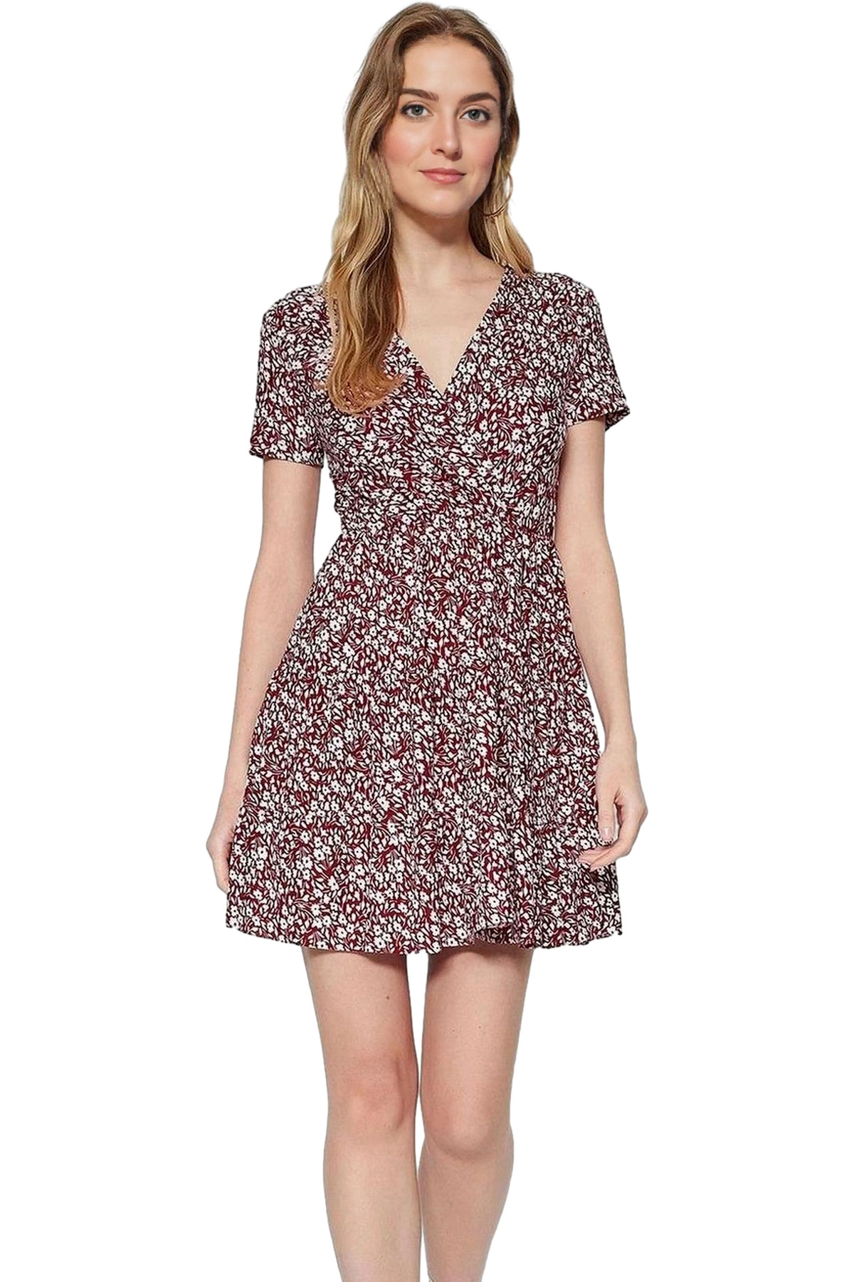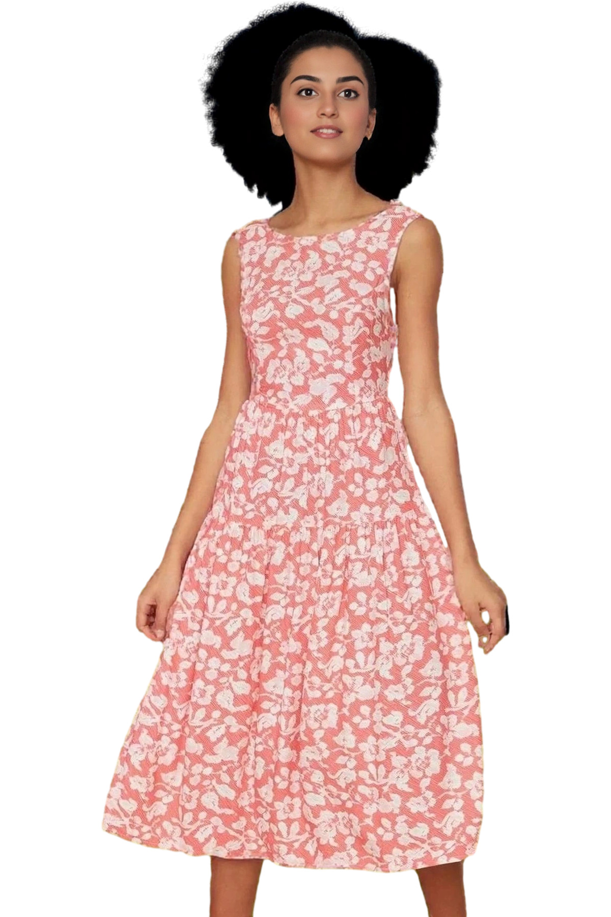 Yazlık Kadın Midi Gömlek Elbise Çiçek Desenli Viskoz Kumaşlı Rahat Konforlu Kesim Uzun Ömürlü