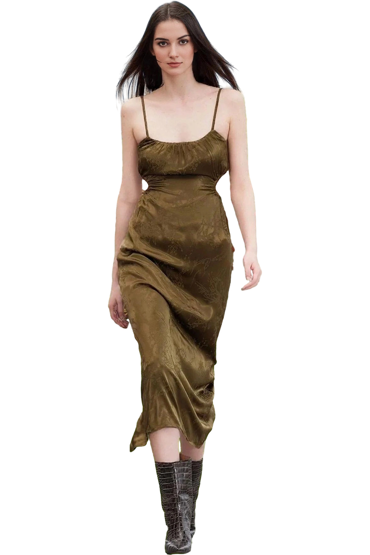 Kadın Bodycon Midi Elbise Kare Yaka Finike Dokuma Yazlık Şık Elbise Trend Tasarım Yüksek Kalite