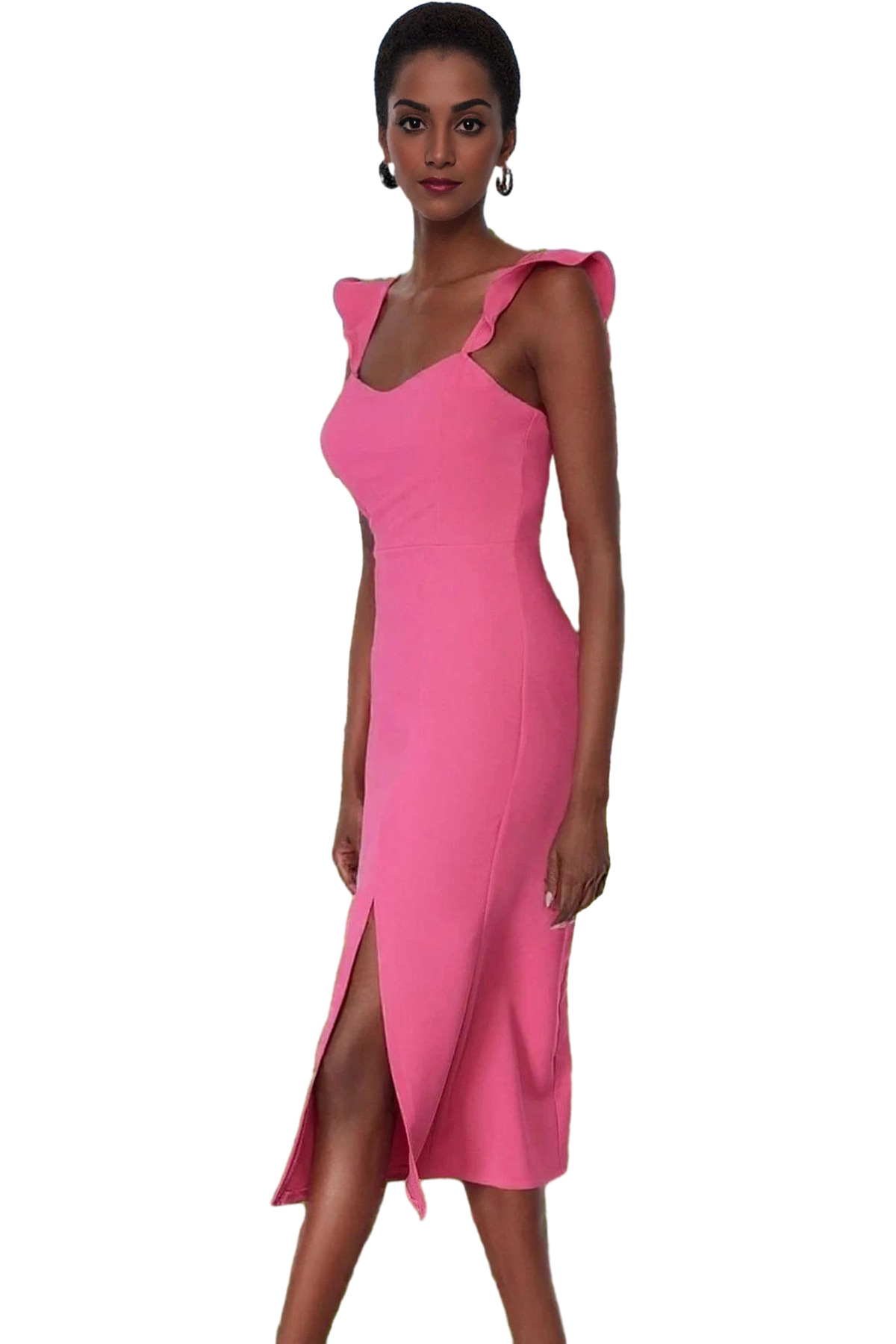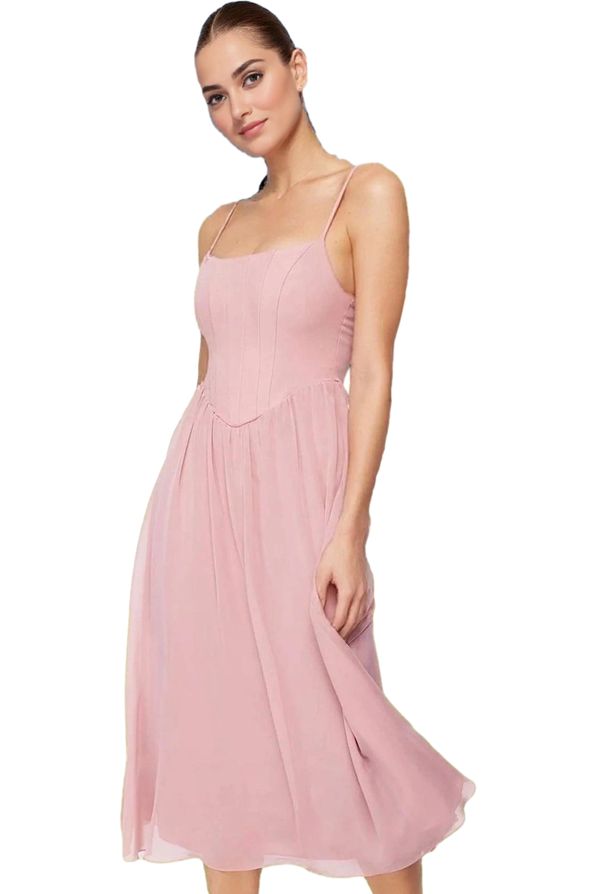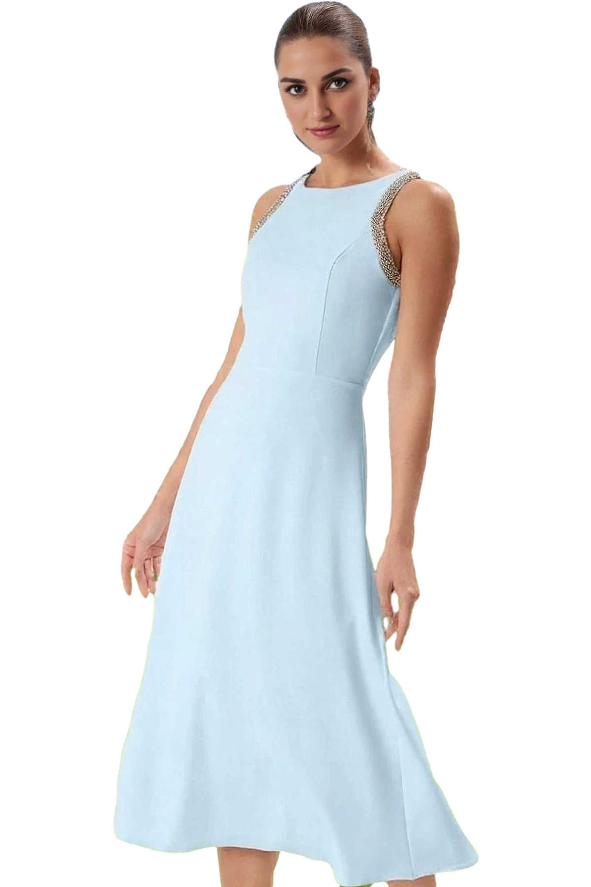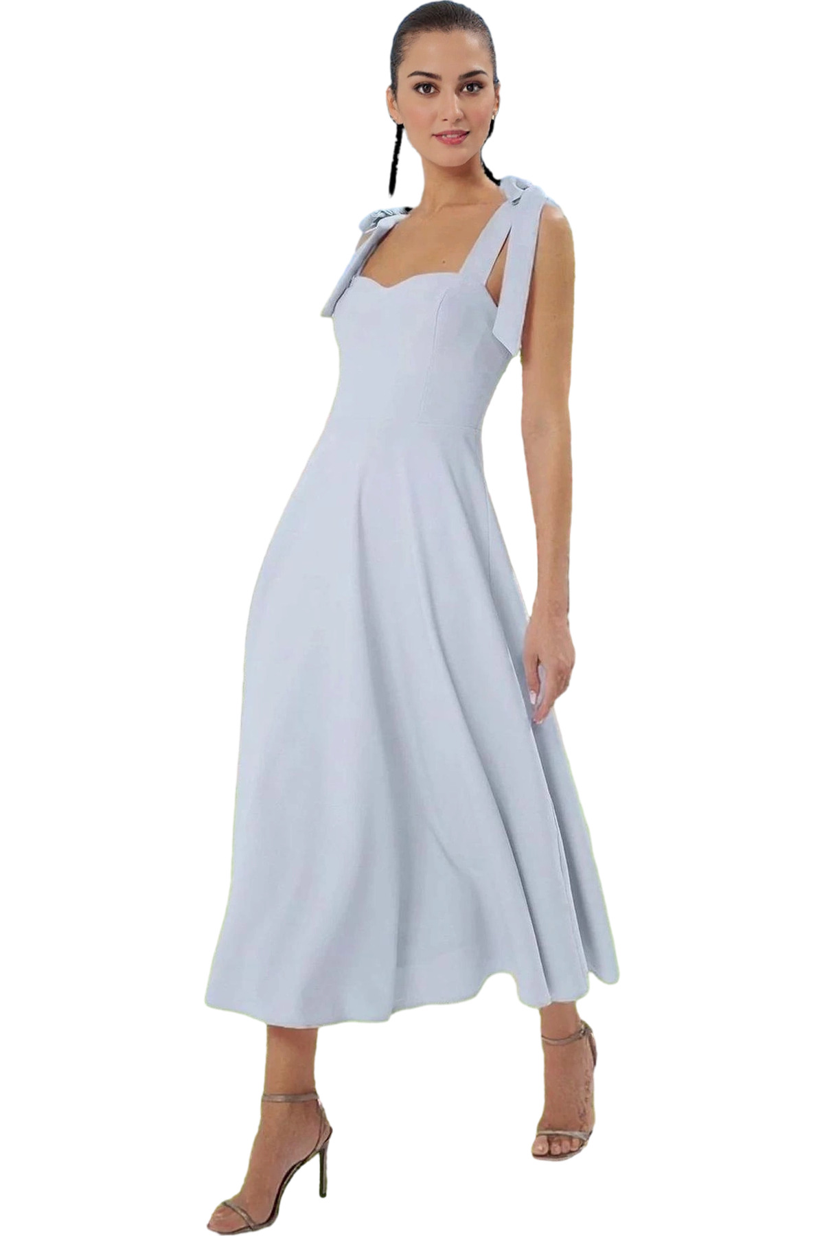 Zarif Kare Yaka Kolsuz Bodycon Abiye Elbise Polyester Midi Boy Premium Kalite Özenle Seçilmiş