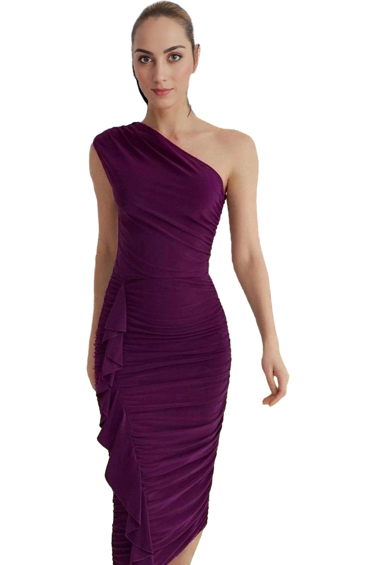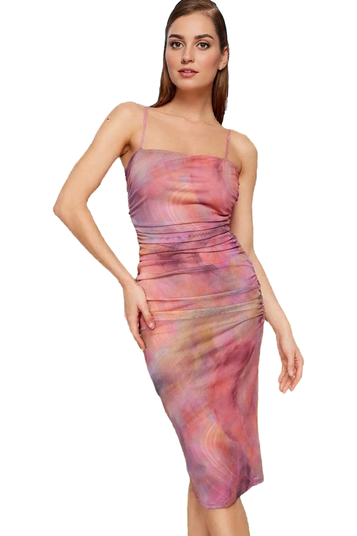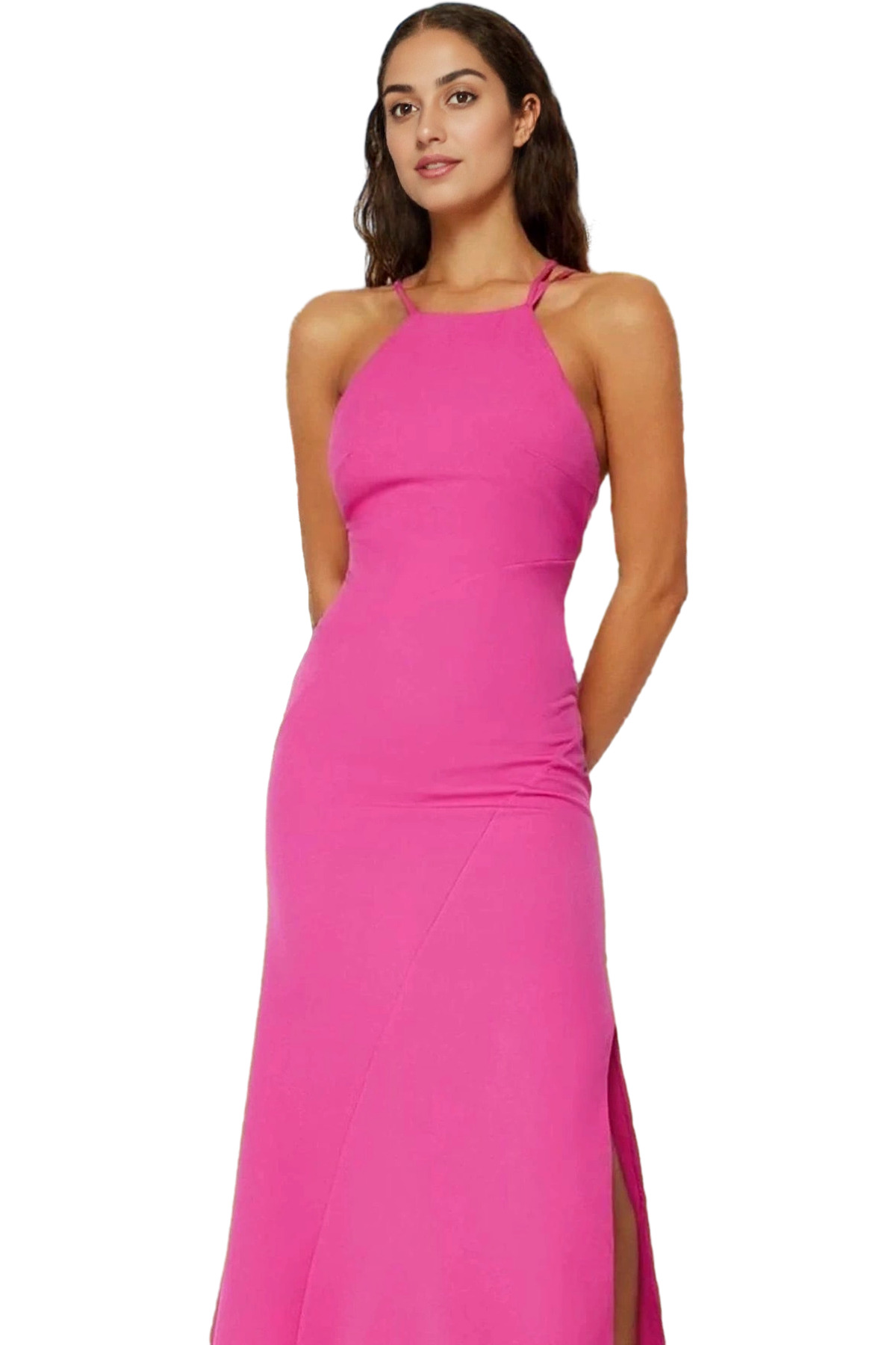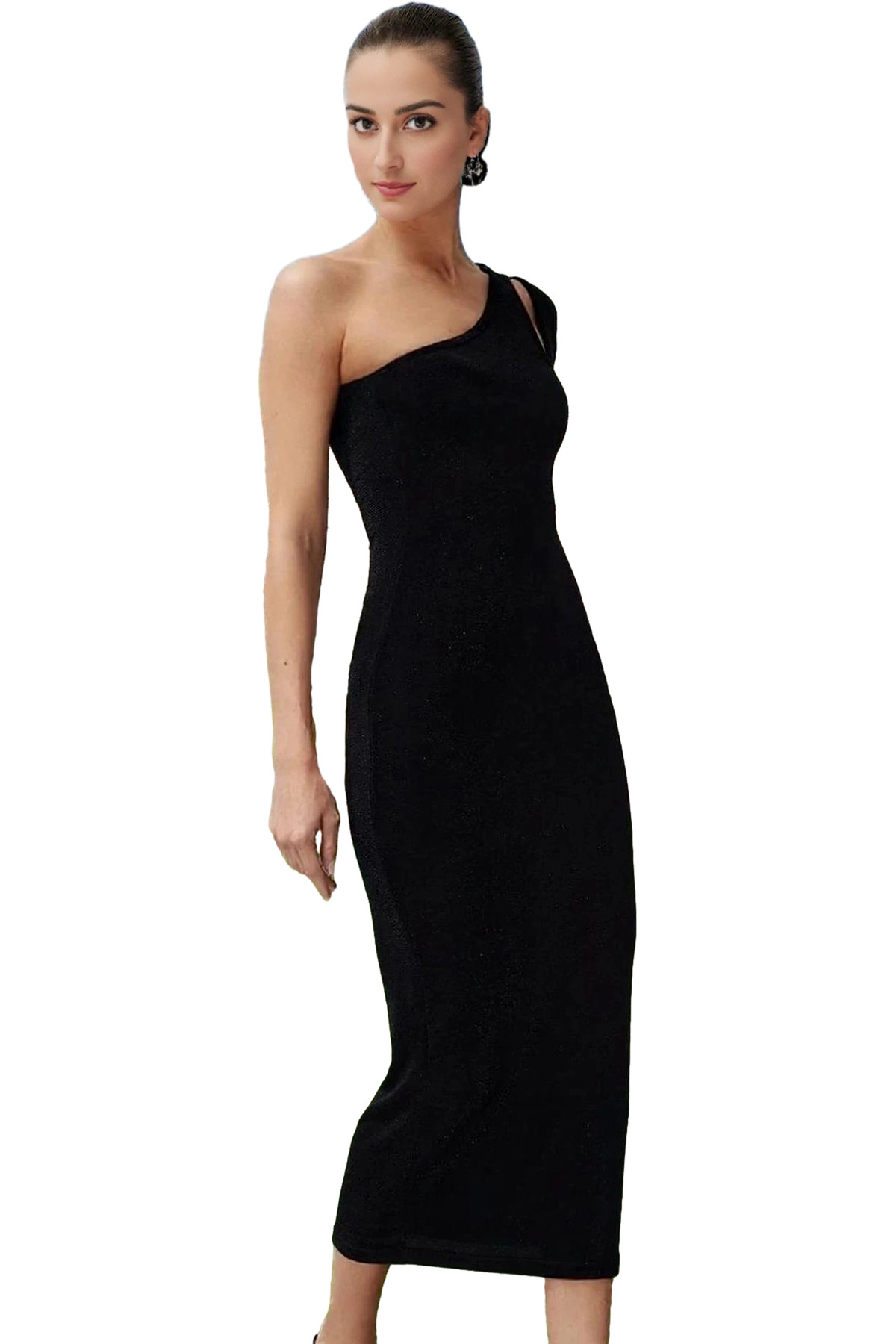 Zarif Kare Yaka Kolsuz Bodycon Abiye Elbise Polyester Midi Boy Premium Kalite Özenle Seçilmiş