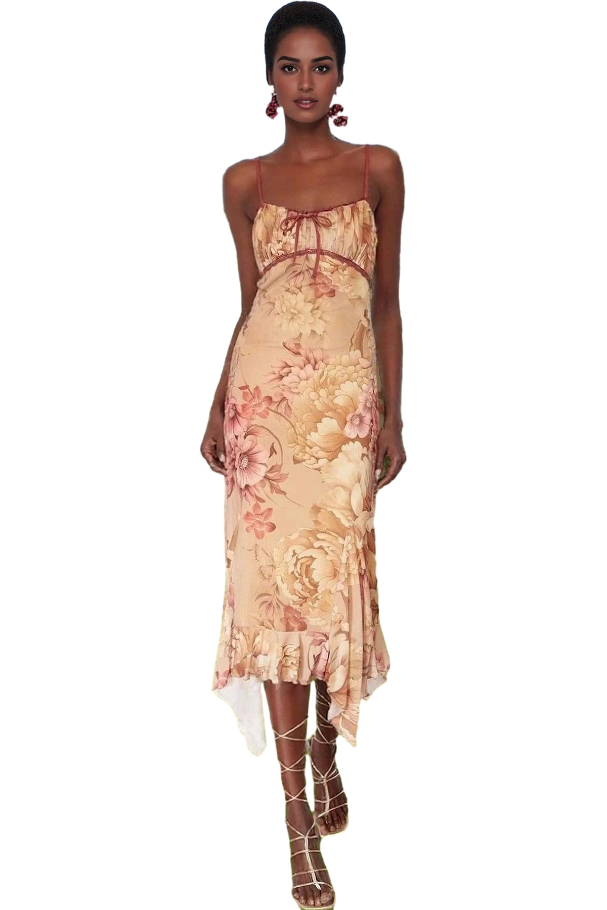Feminen A Kesim Örme Tül Elbise Çiçek Desenli Yazlık Mükemmel Uyum Mükemmel Uyum Mükemmel Uyum