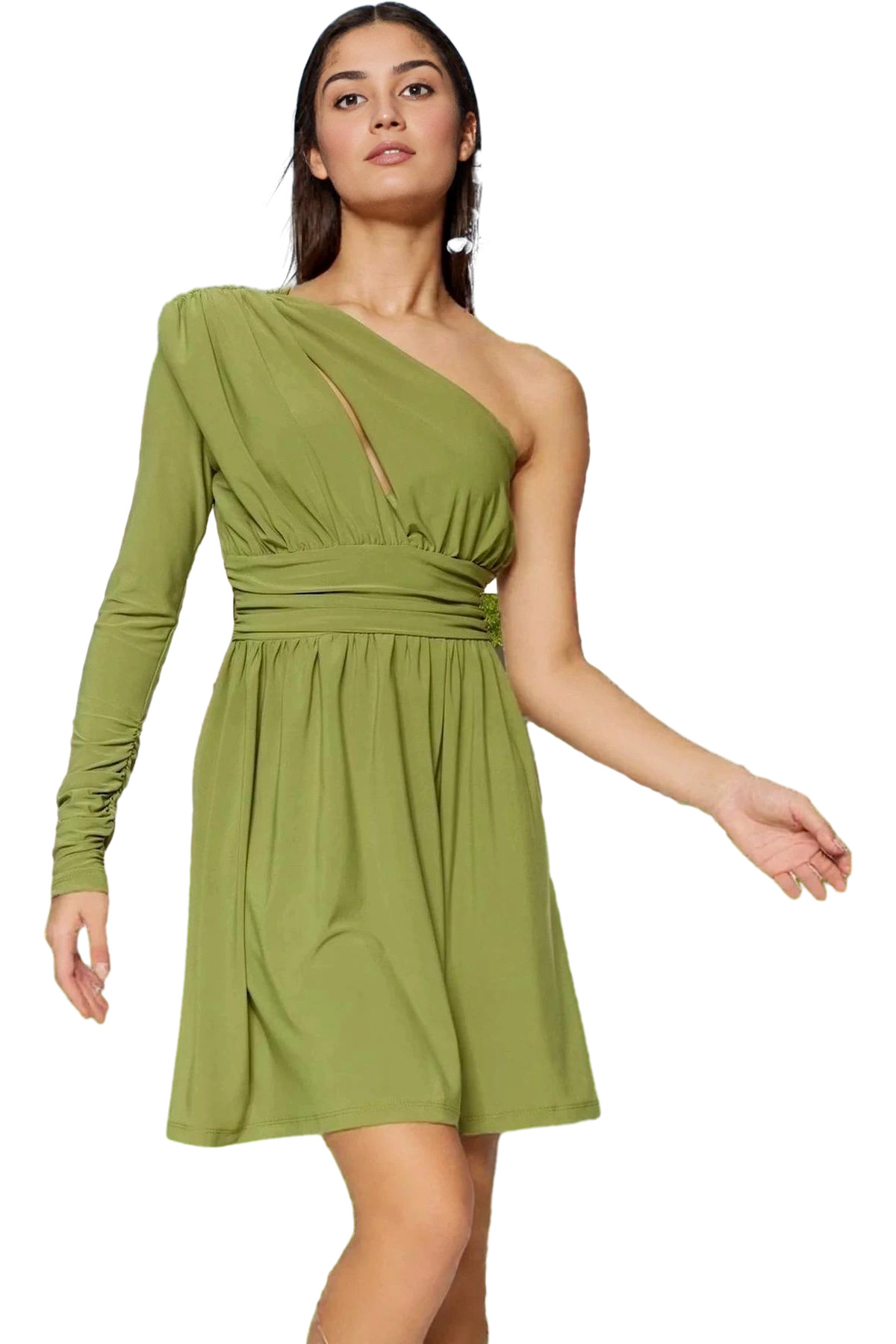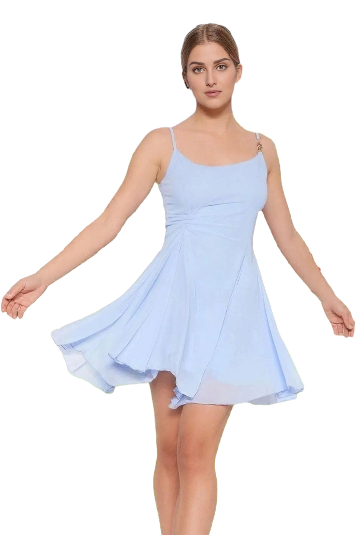 Astarlı Şık Mini Abiye Elbise Polyester Elastan Dokuma Kumaş Profesyonel Görünüm Özel Tasarım