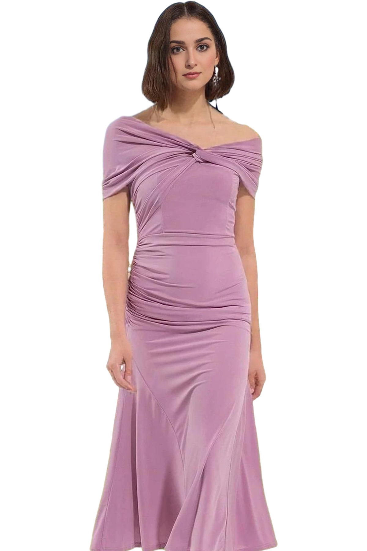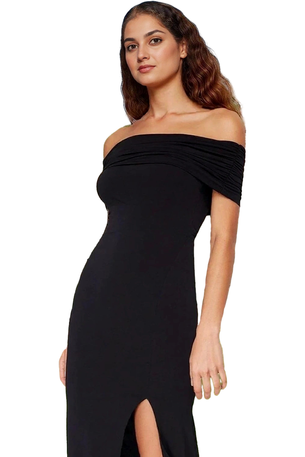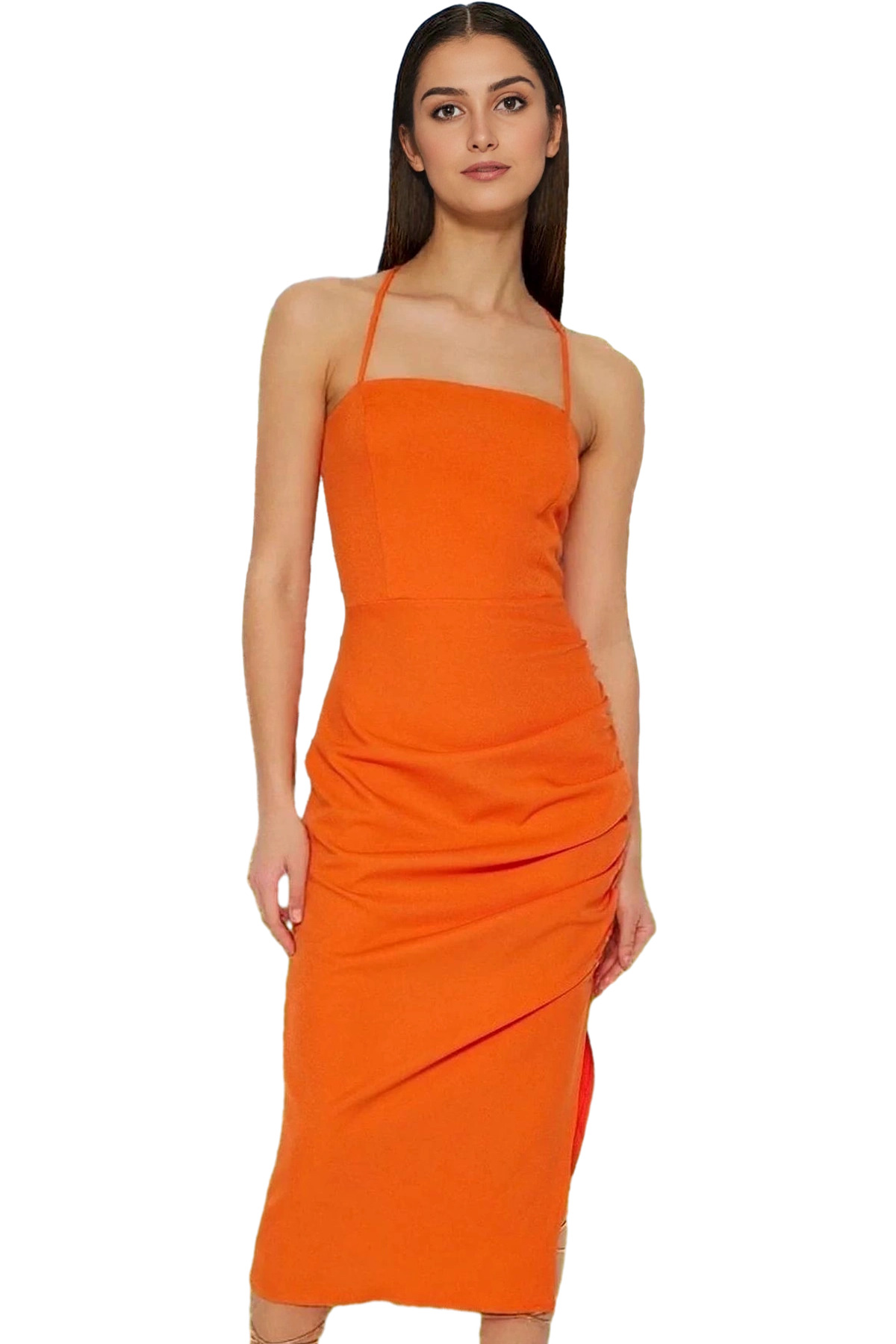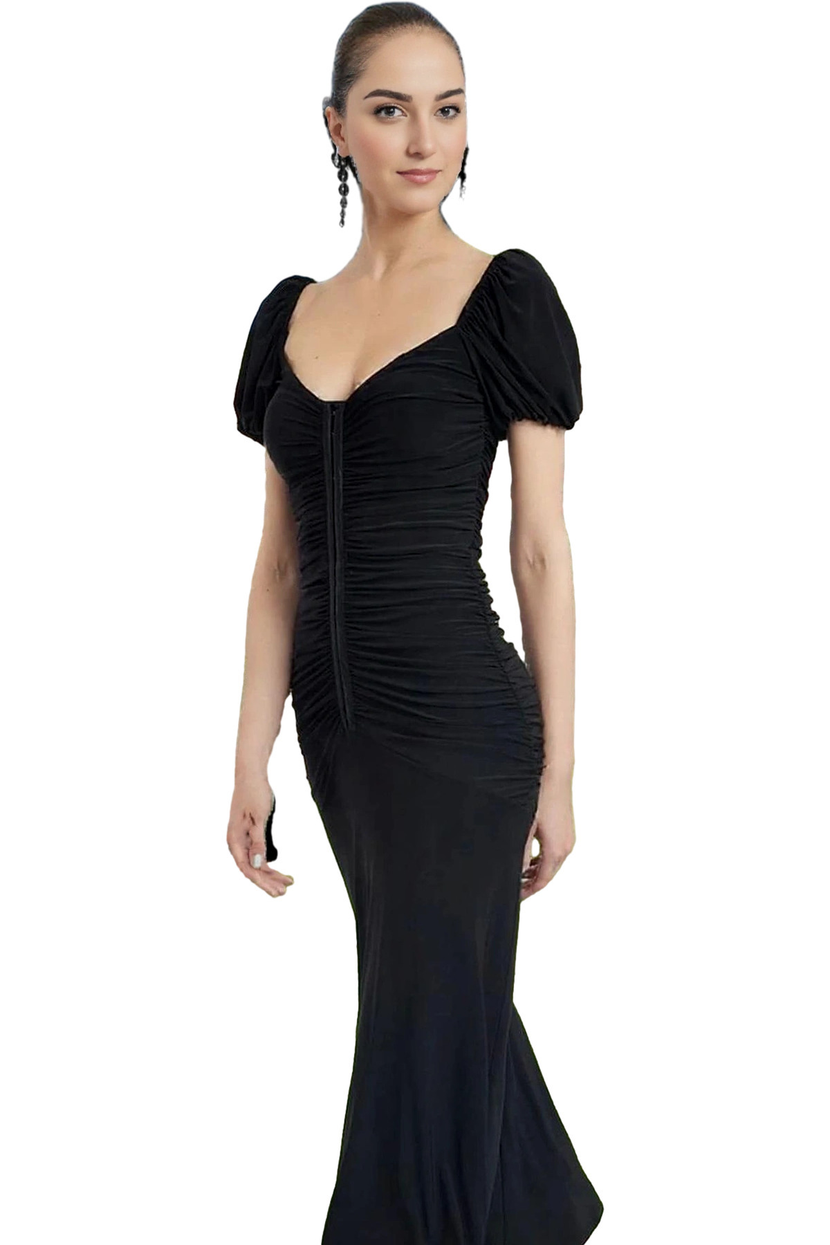 Şık Kare Yaka Bodycon Abiye Elbise Dokuma Finike Kumaş Özel Günler Rahat Kullanım Trend Tasarım