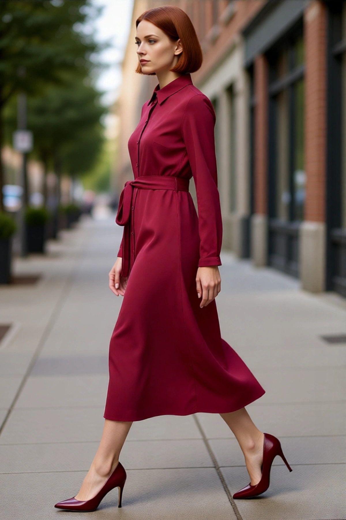 Moda Regular Dik Yaka Midi Boy Pilise Kollu Yakası Bağlamalı Astarlı Şifon Dokuma Kışlık Elbise