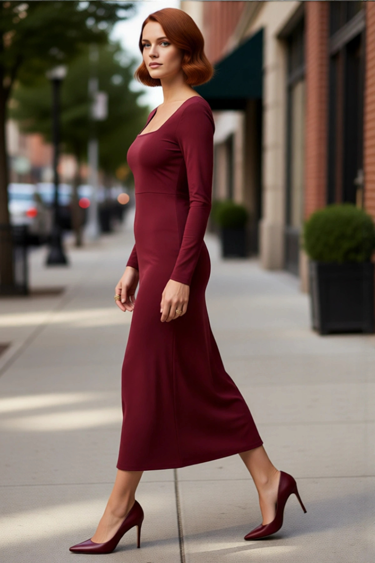 Kadınlara Özel Düz Desenli Uzun Kollu Bodycon Maxi Elbise Kare Yaka Polyester Karışımlı Kaliteli