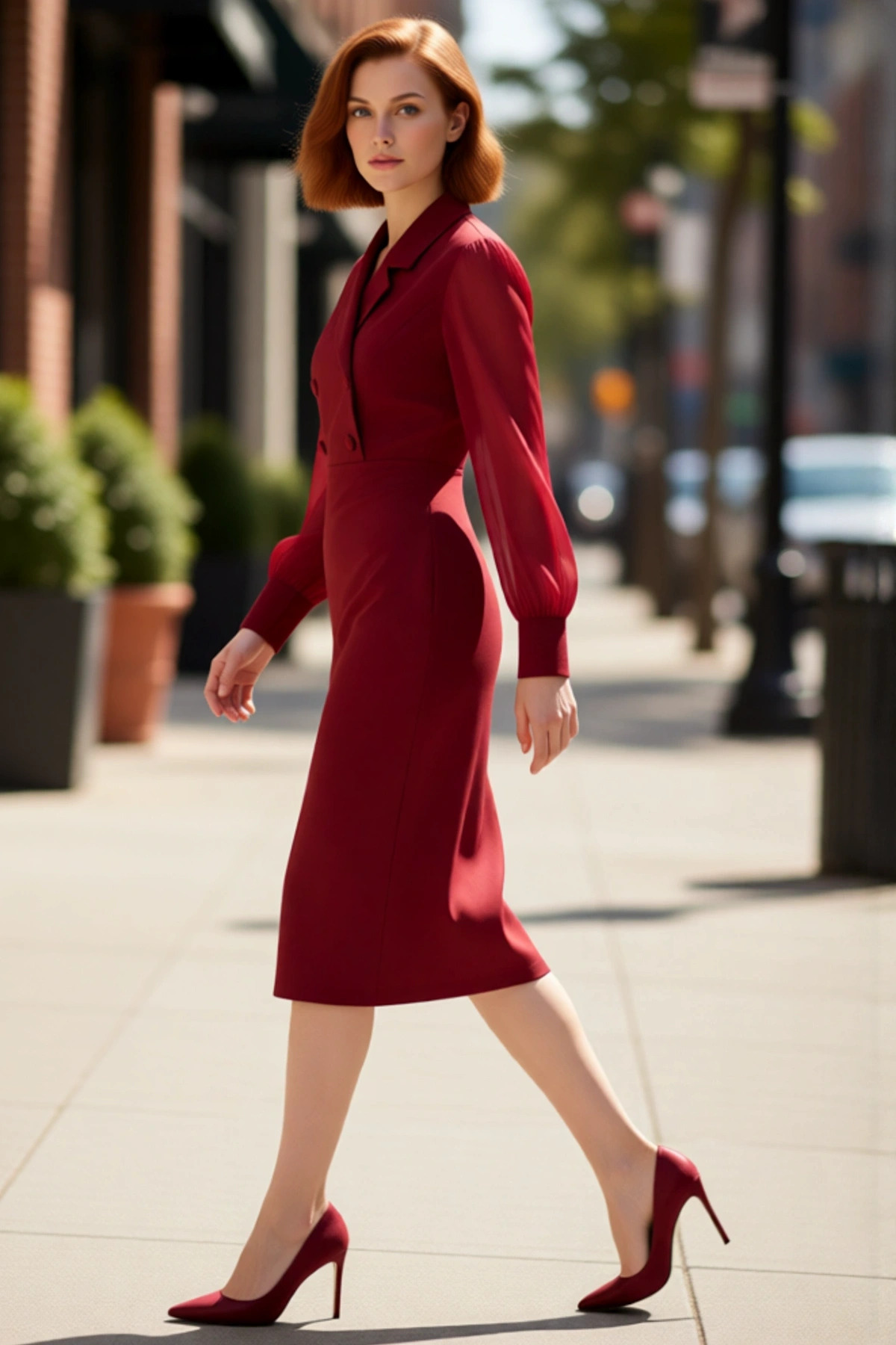 Kadın Şık Bodycon Dokuma Midi Elbise Ceket Yaka Ve Balon Kol Detayları İle Özel Günler İçin İdeal