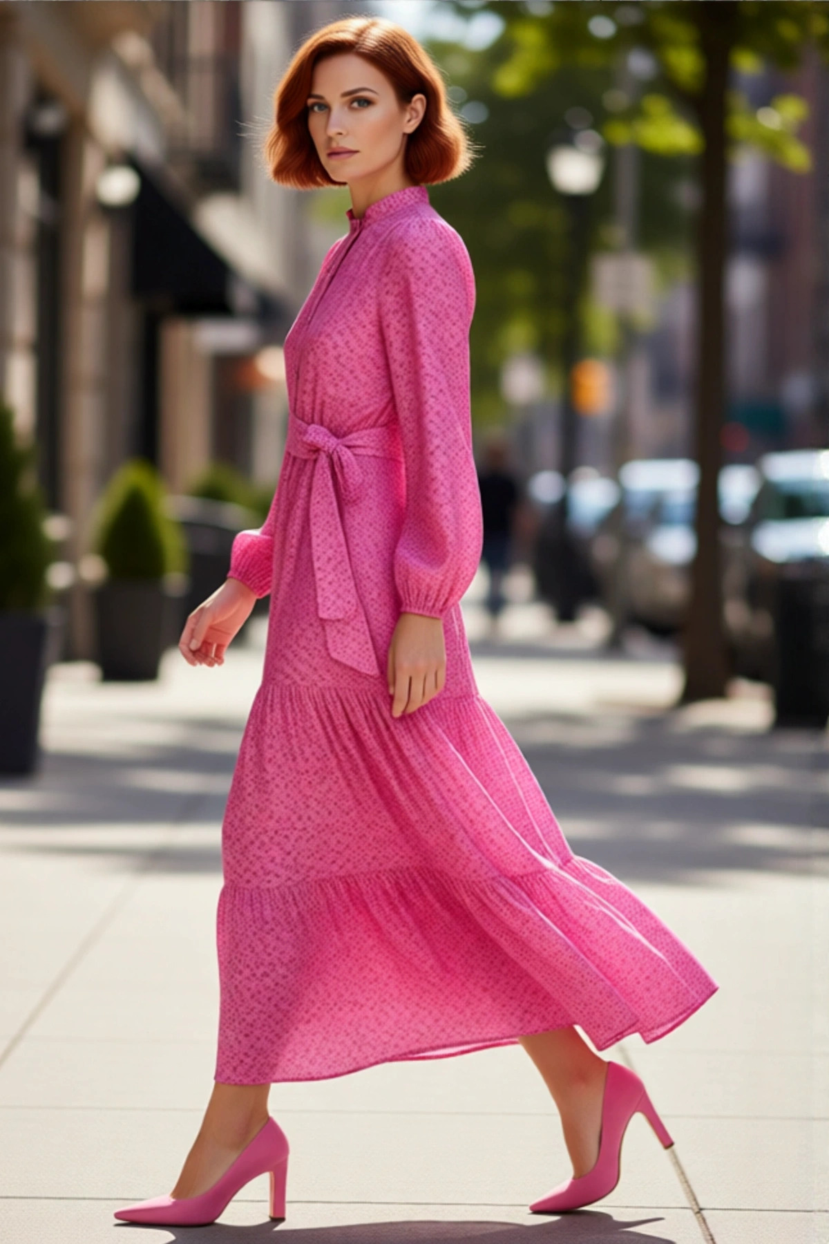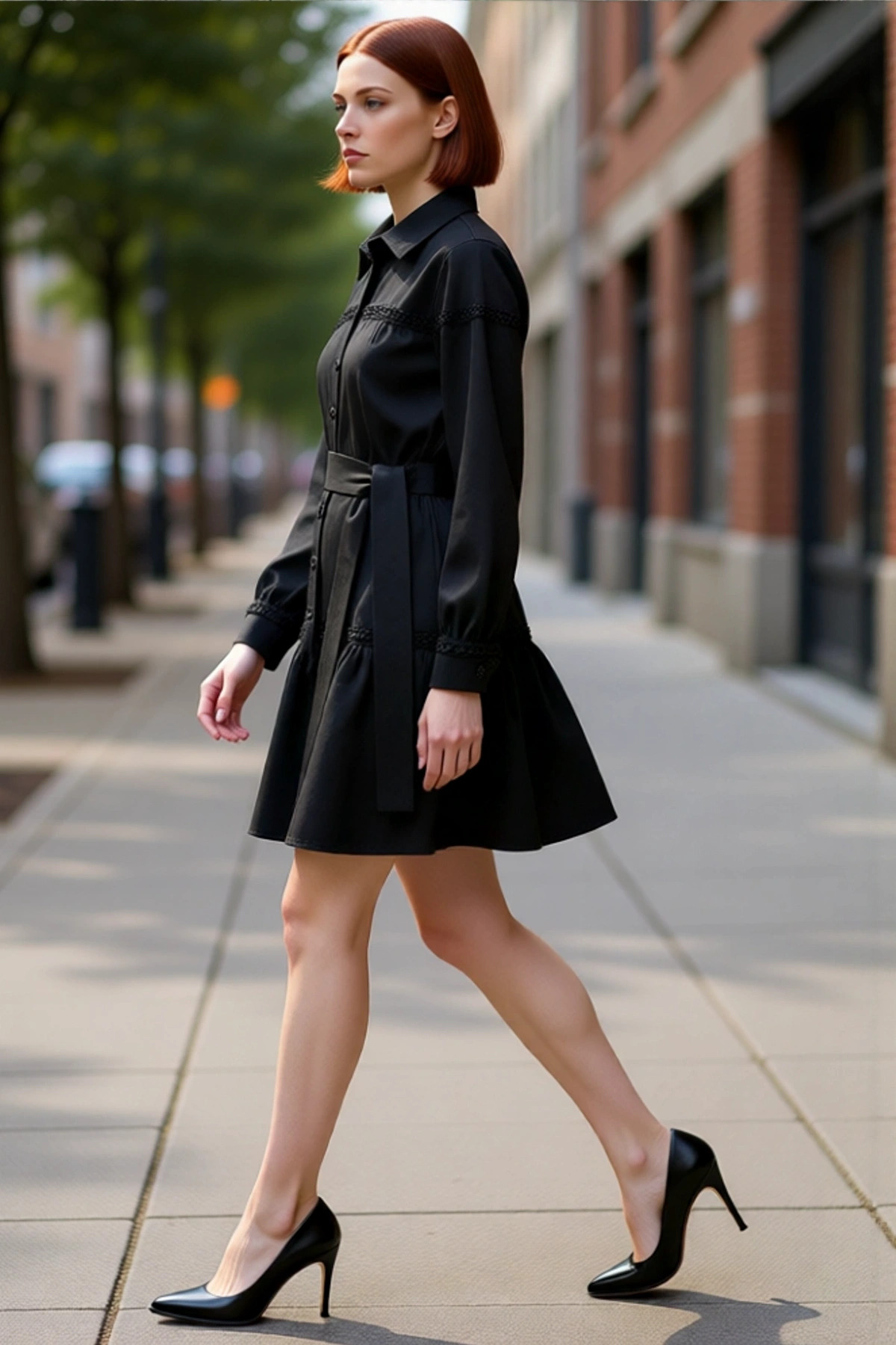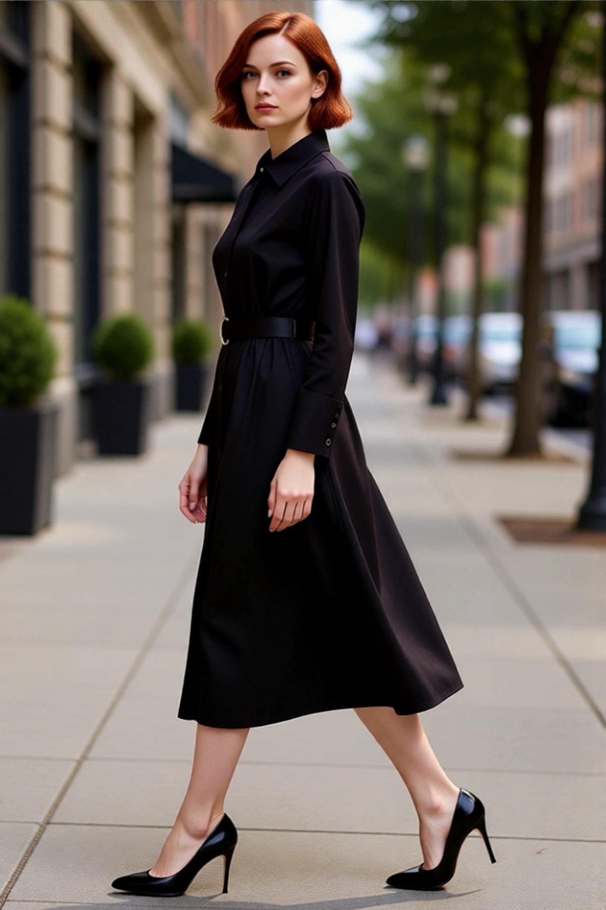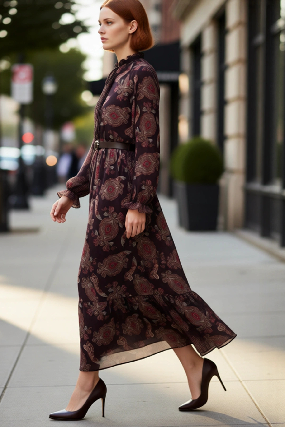 Kadın Kareli Desen Ceket Yaka Fırfırlı Etekli Uzun Kollu Düğmeli 0 Pamuk Tüvit Elbise İş Şıklığı