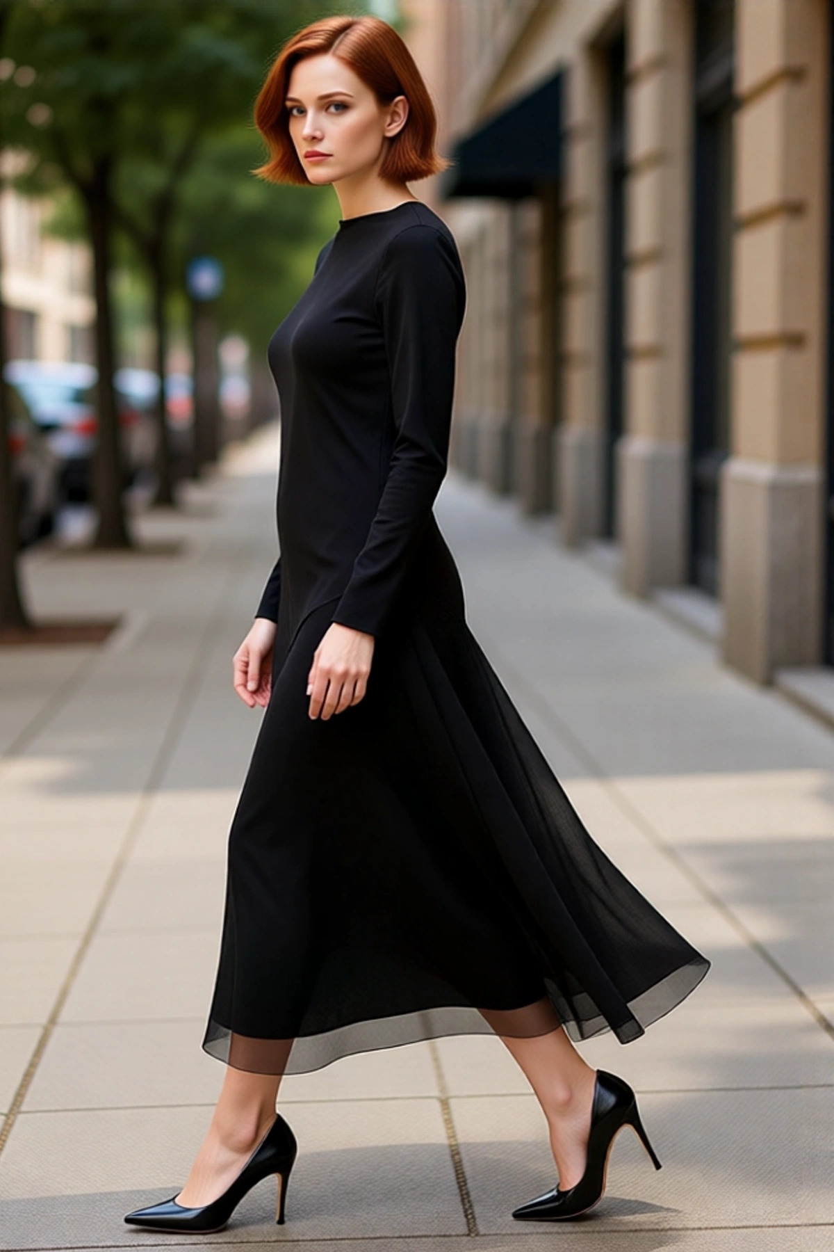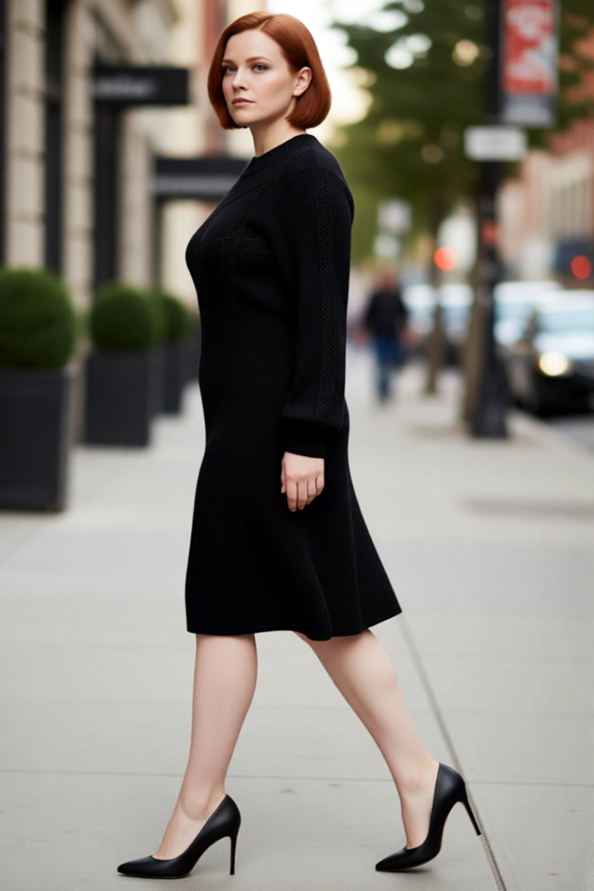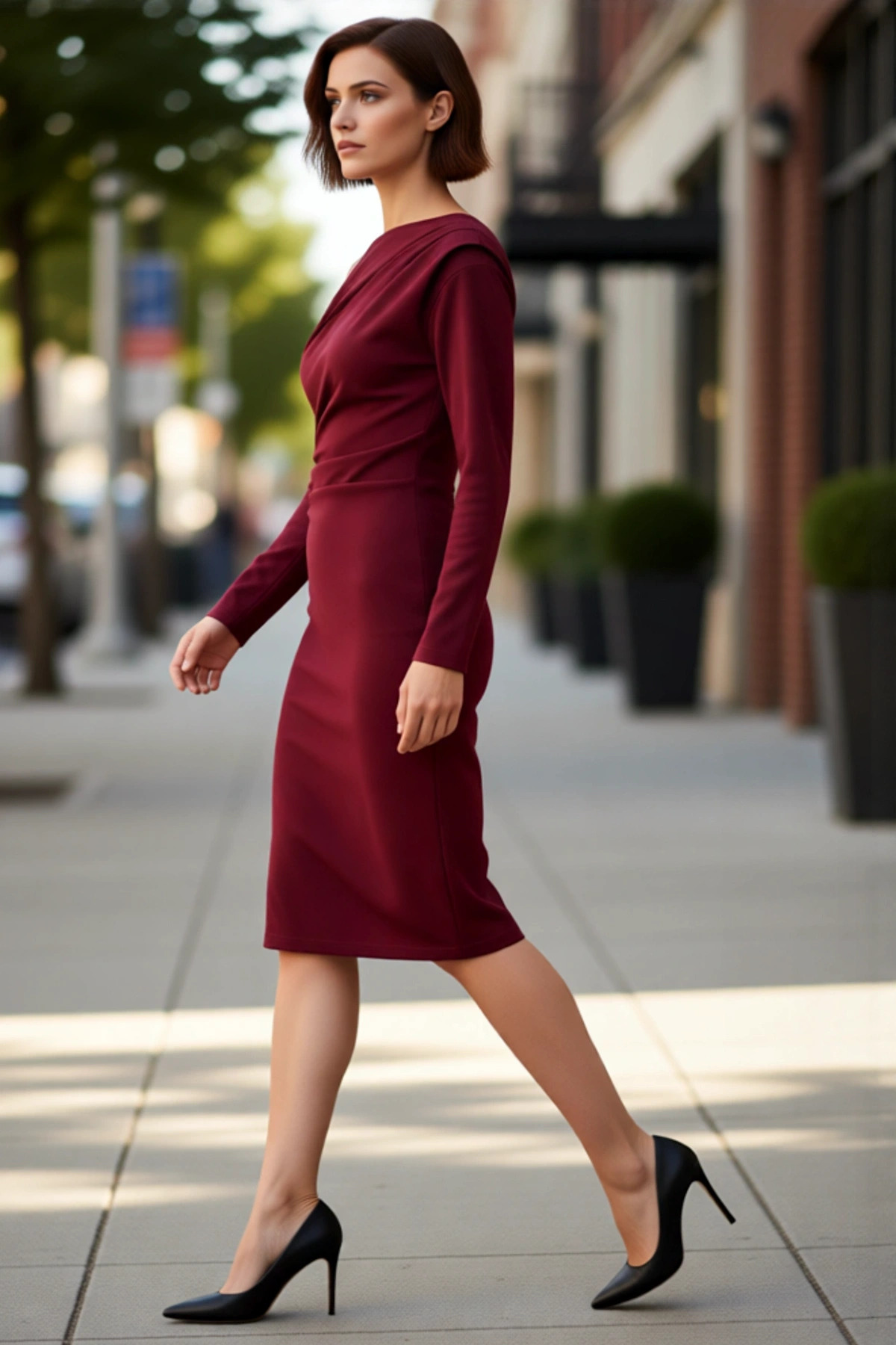 Şık Kadın Asimetrik Yaka Bodycon Kalıp Midi Boy Uzun Kollu Scuba Krep Örme Elbise Günlük ve Özel