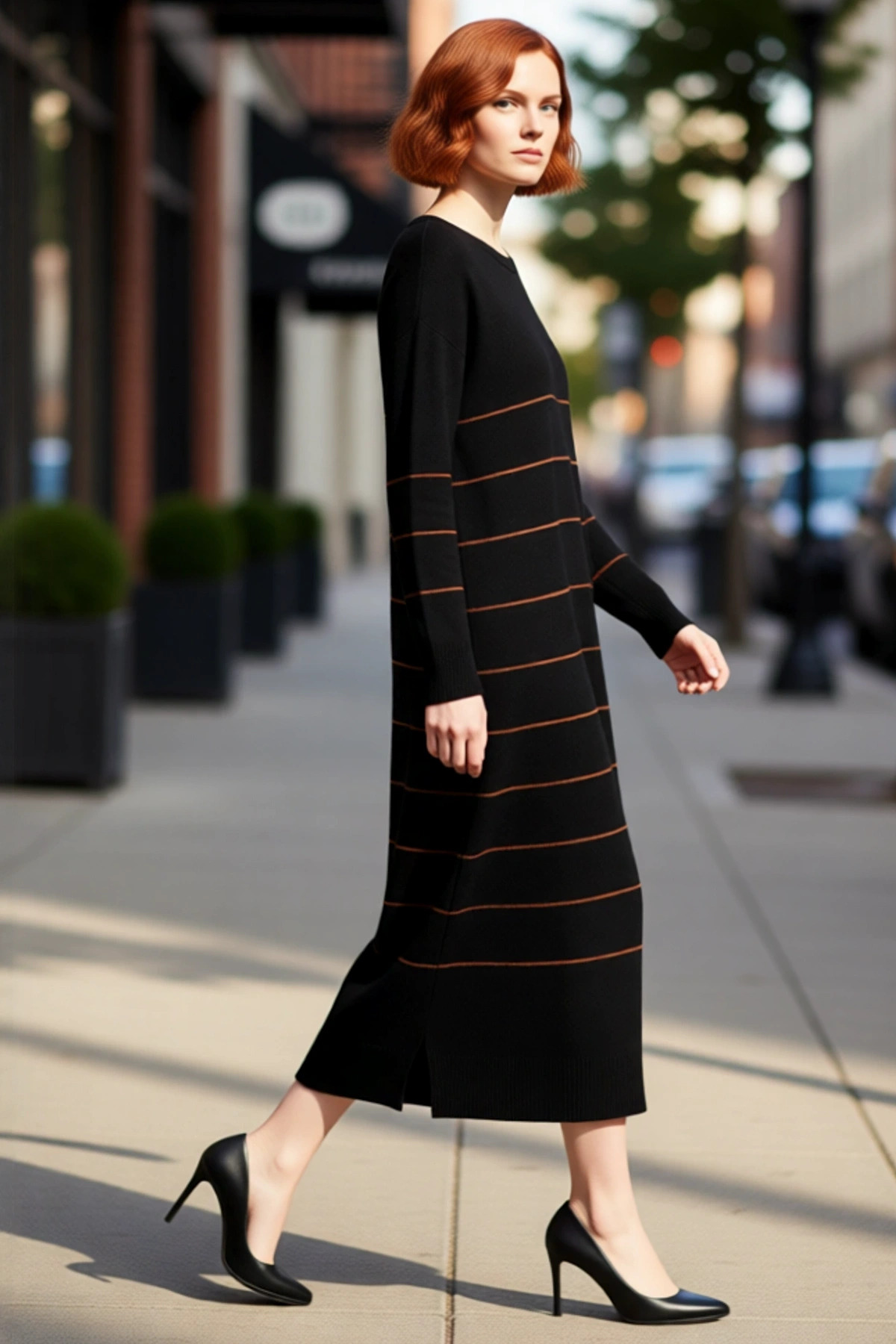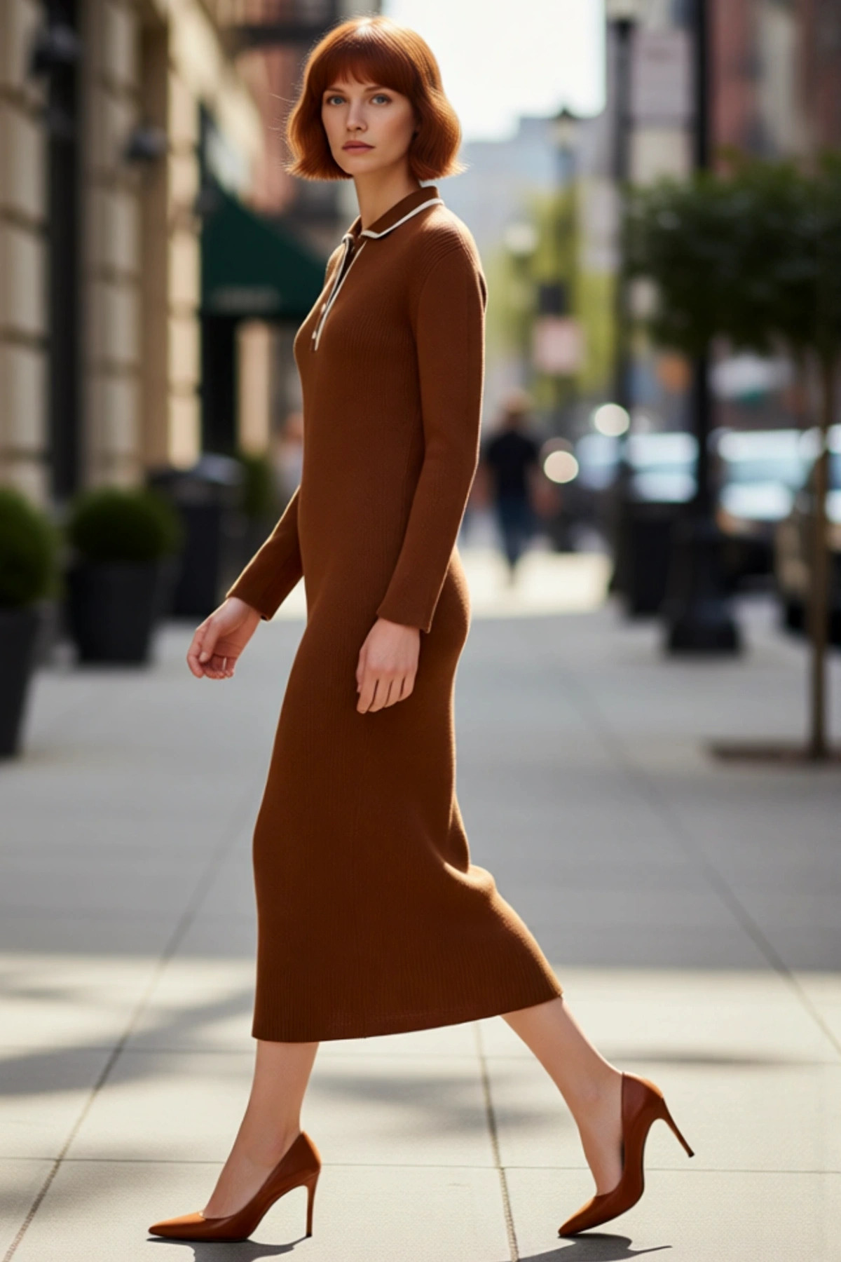 Kadın Biyeli Polo Yaka Triko Elbise Shift Kalıp Uzun Kollu Maxi Boy Kışlık Rahat Ve Modern Bir Stil