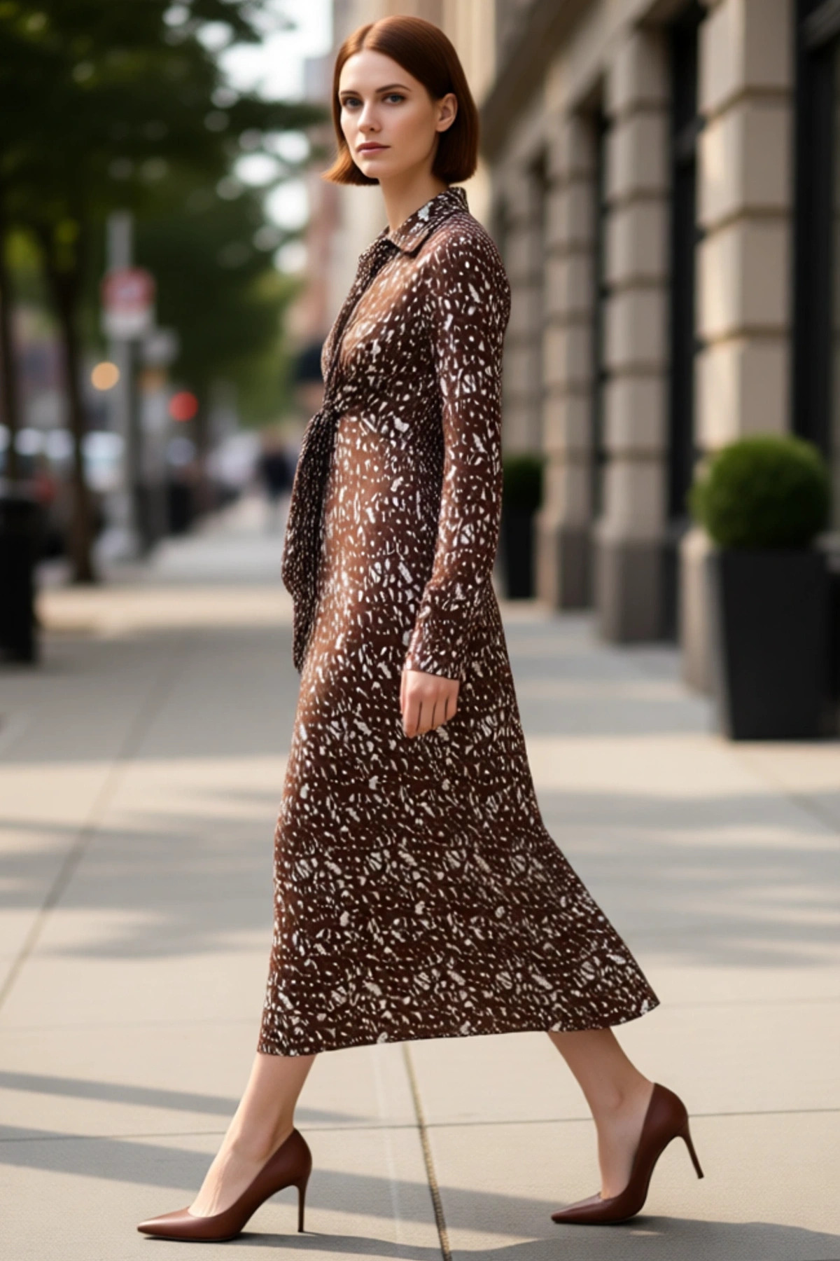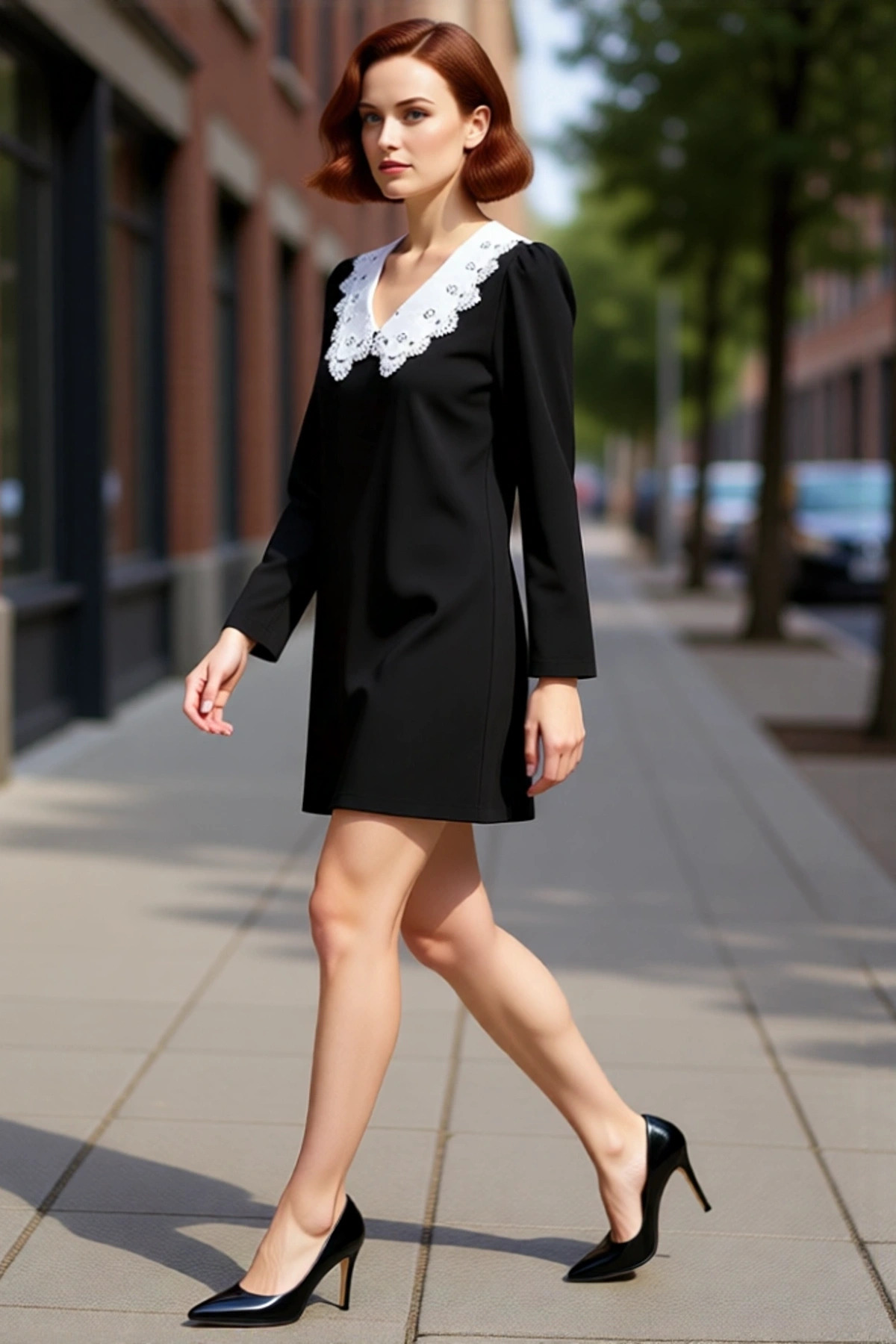 Kadın Mini Skater Balon Kol Detaylı Gömlek Yakalı Kemerli Dokuma Elbise Modern Ve Çekici Stil