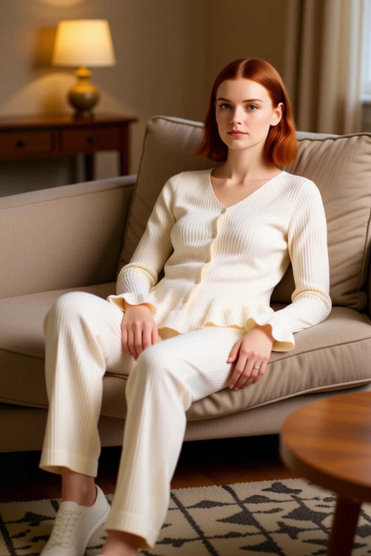 Kadın V Yaka Fırfırlı Örme Pijama Takımı Fonksiyonel Dayanıklı Kaliteli Konforlu Estetik Şık