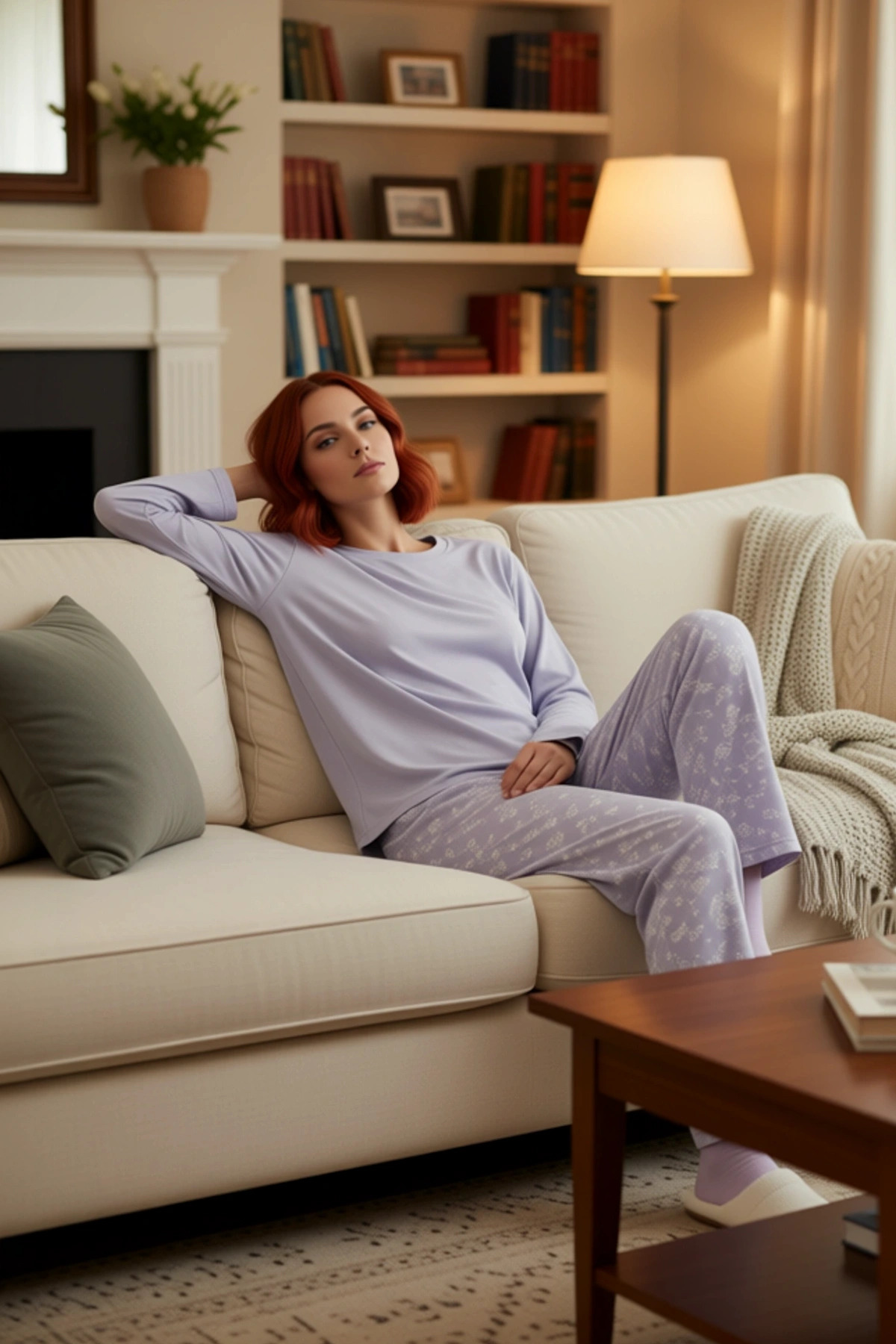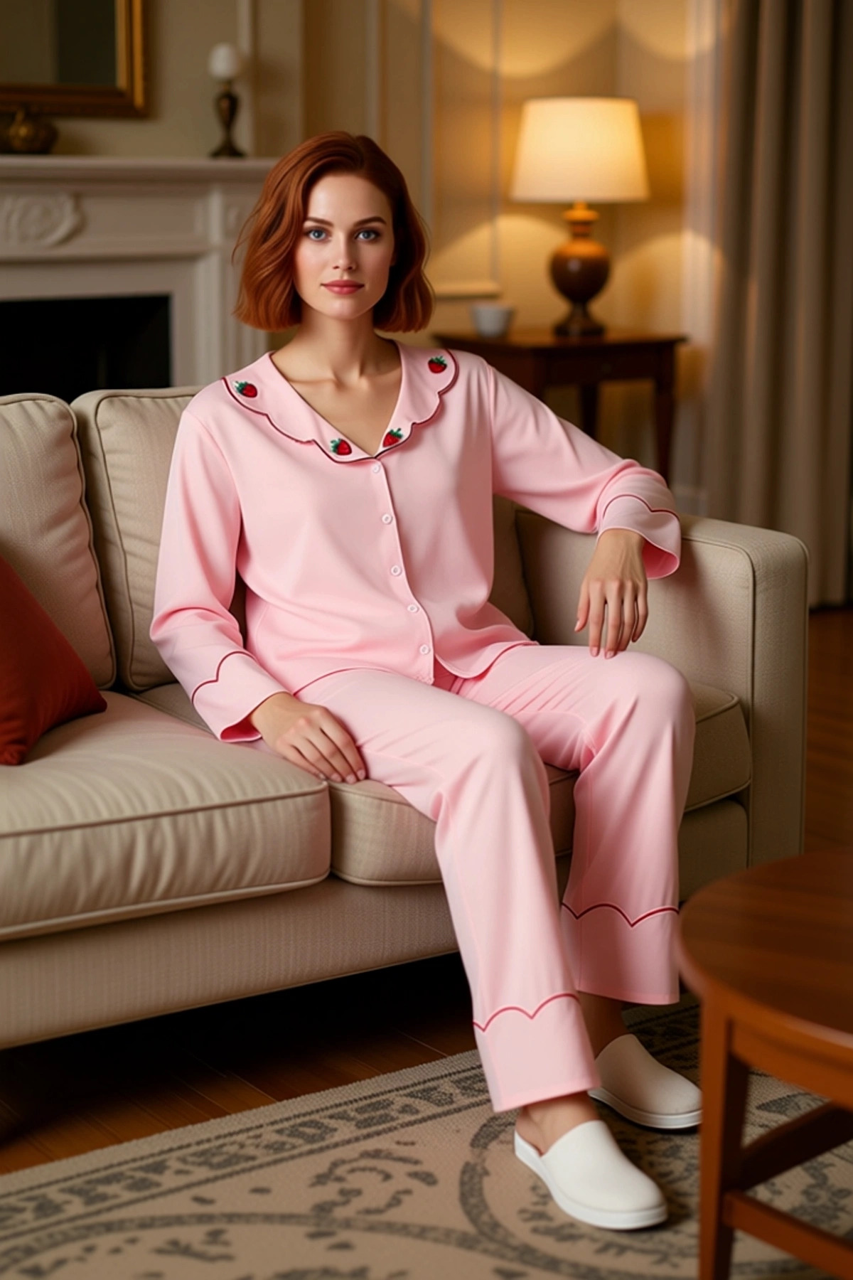 Kadın Çilek Detaylı Viskoz Dokuma Lounge Takımı Fonksiyonel Dayanıklı Kaliteli Konforlu Şık