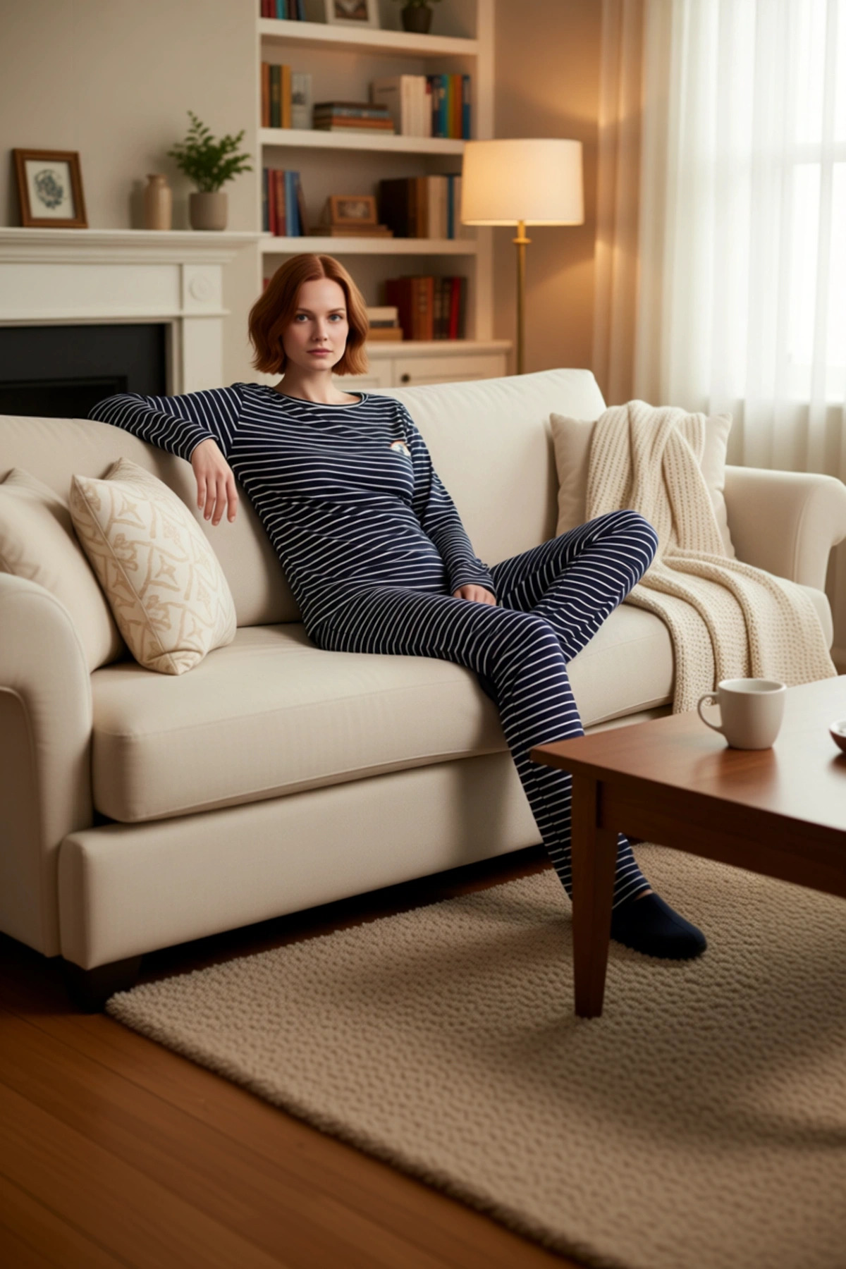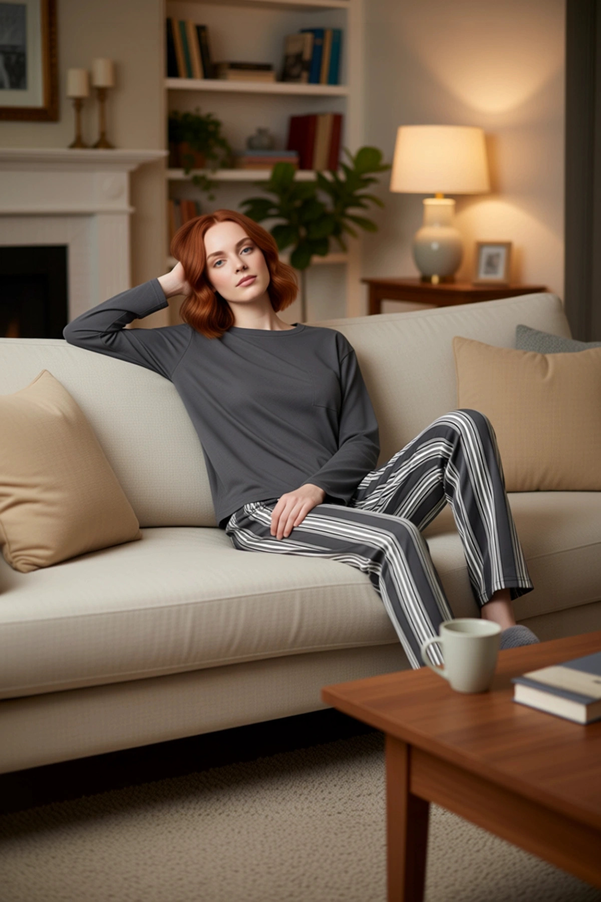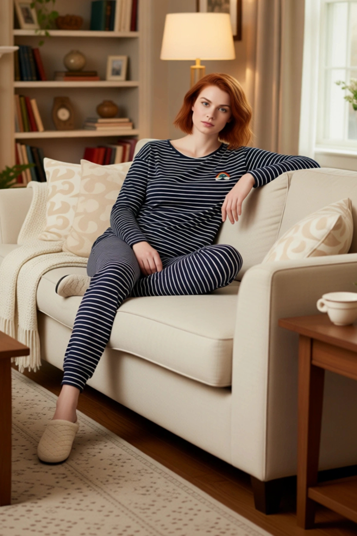 Kadın Çizgili Pamuklu Ev Giyim Takımı Fonksiyonel Dayanıklı Kaliteli Konforlu Estetik Spor