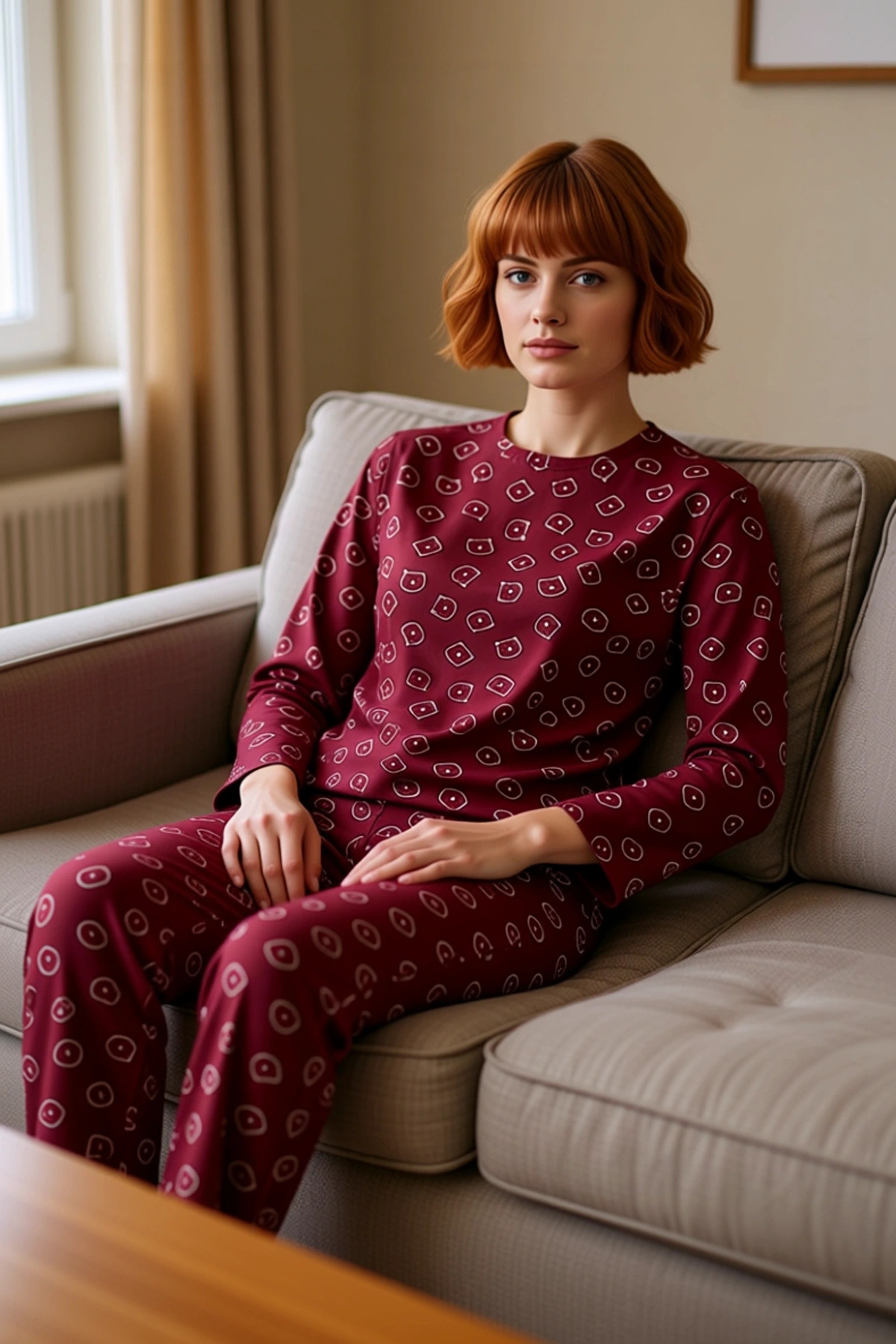 Kadin Kirmizi Desenli Uzun Kol Pijama Takımı Fonksiyonel Dayanıklı Kaliteli Konforlu Rahat