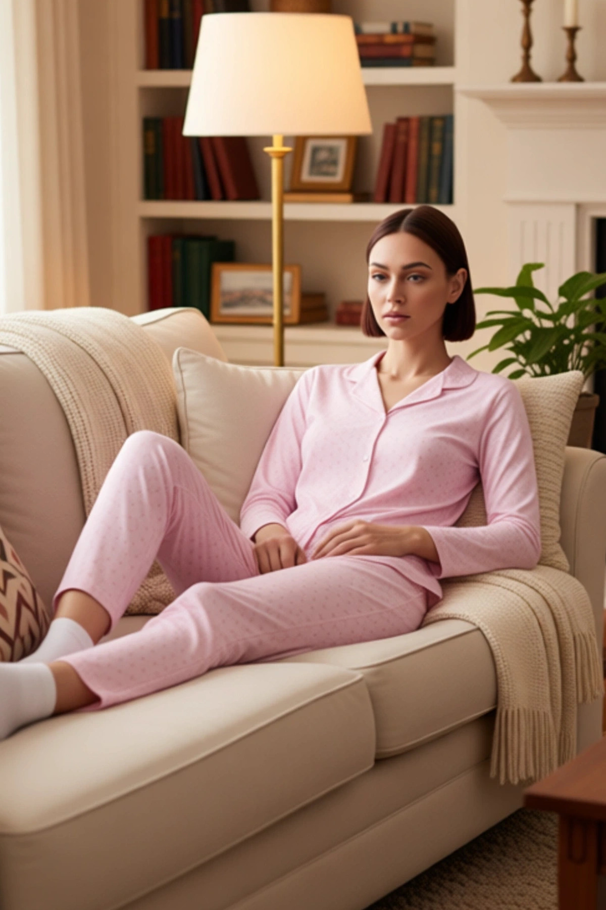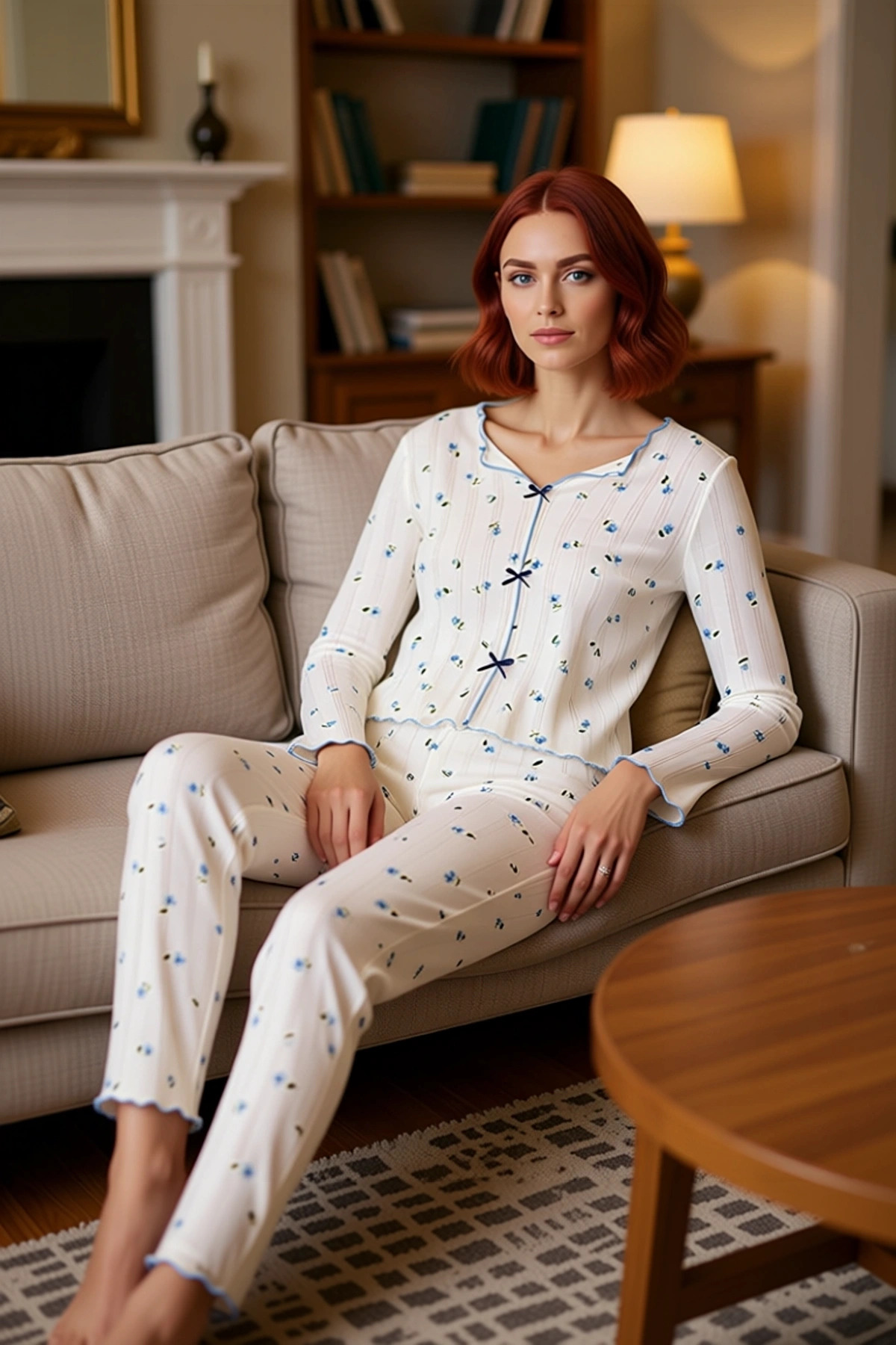 Kadın Baskılı Pamuklu Pijama Takımı Gömlek Pantolon Fonksiyonel Dayanıklı Kaliteli Estetik