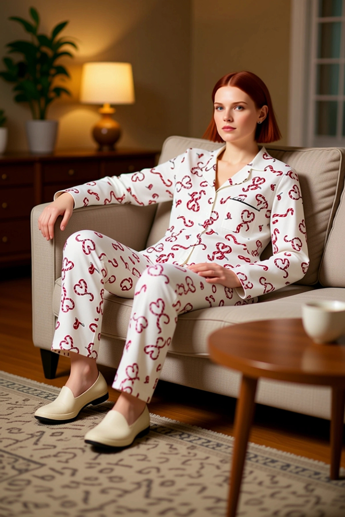 Kadın Yılbaşı Kalp Desenli Pijama Takımı Gömlek Yaka Fonksiyonel Dayanıklı Kaliteli Modern
