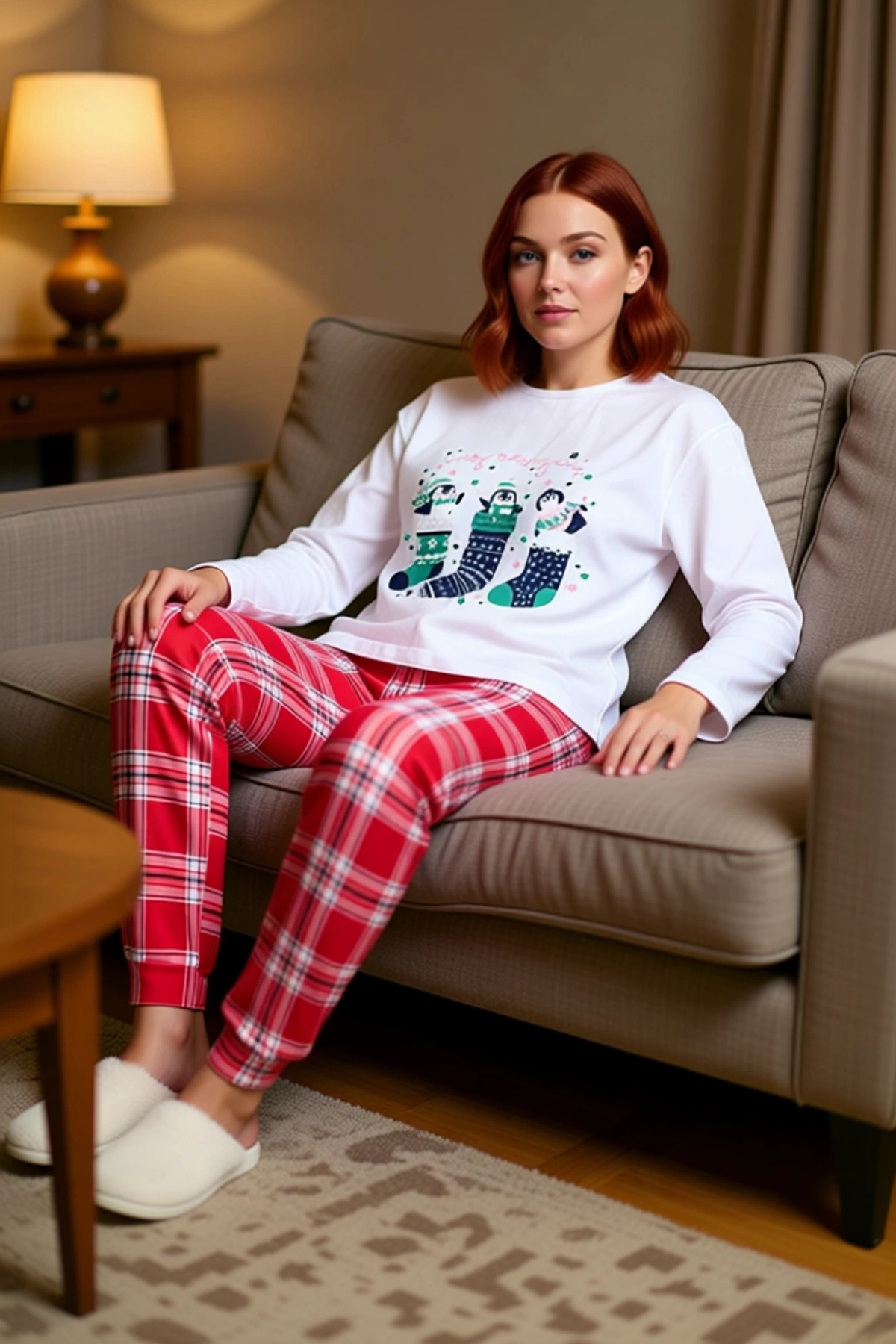 Kadın Çok Renkli Ekose Pijama Takımı Uzun Kollu Bisiklet Yaka Fonksiyonel Dayanıklı Modern