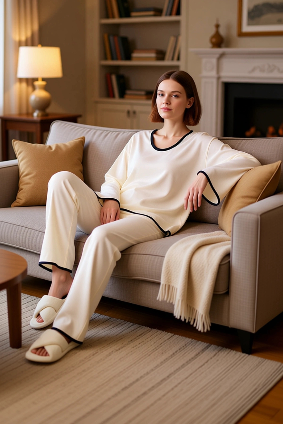 Kadın Uzun Kollu Büzgülü Ev Giyim Seti Fonksiyonel Dayanıklı Kaliteli Konforlu Estetik Şık
