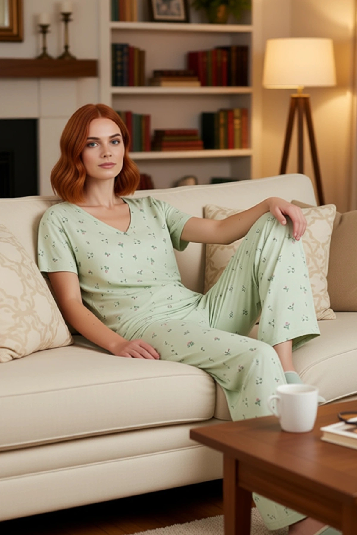 Kadın Çiçek Desenli V Yaka Viskoz Süprem Pijama Takımı Fonksiyonel Dayanıklı Kaliteli Spor
