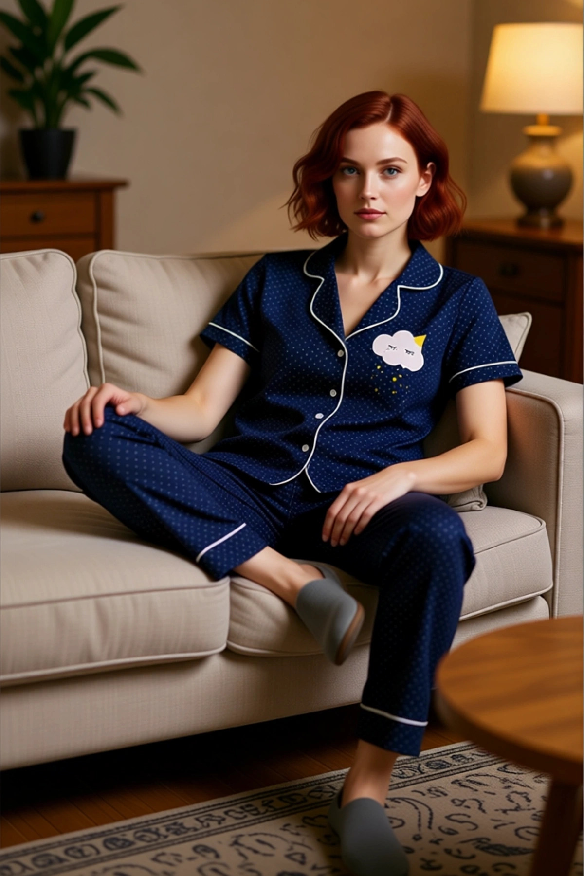 Kadın Puantiye Desenli Gömlek Yaka Pijama Seti Fonksiyonel Dayanıklı Kaliteli Konforlu Şık