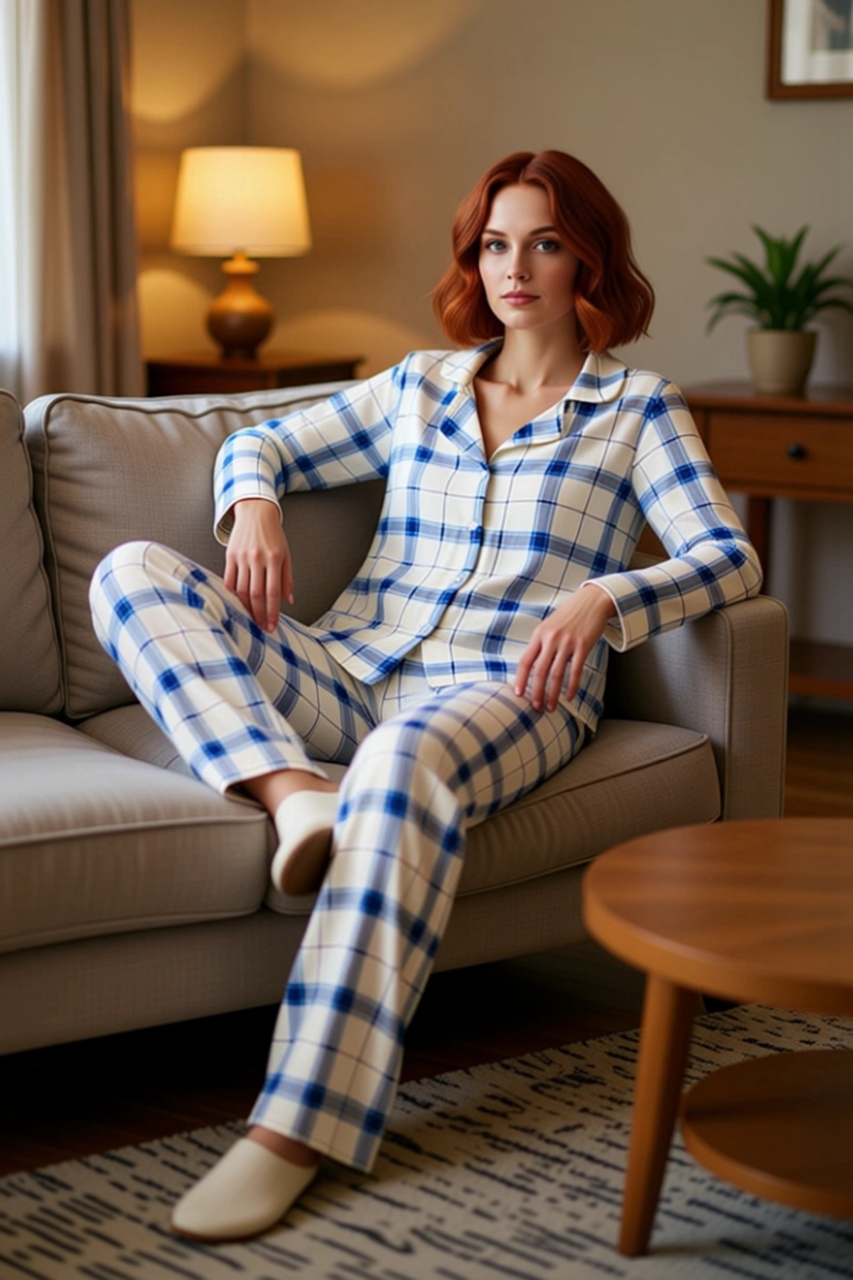 Kadın Ekoseli Viskon Pijama Seti Fonksiyonel Dayanıklı Kaliteli Konforlu Estetik Premium Şık
