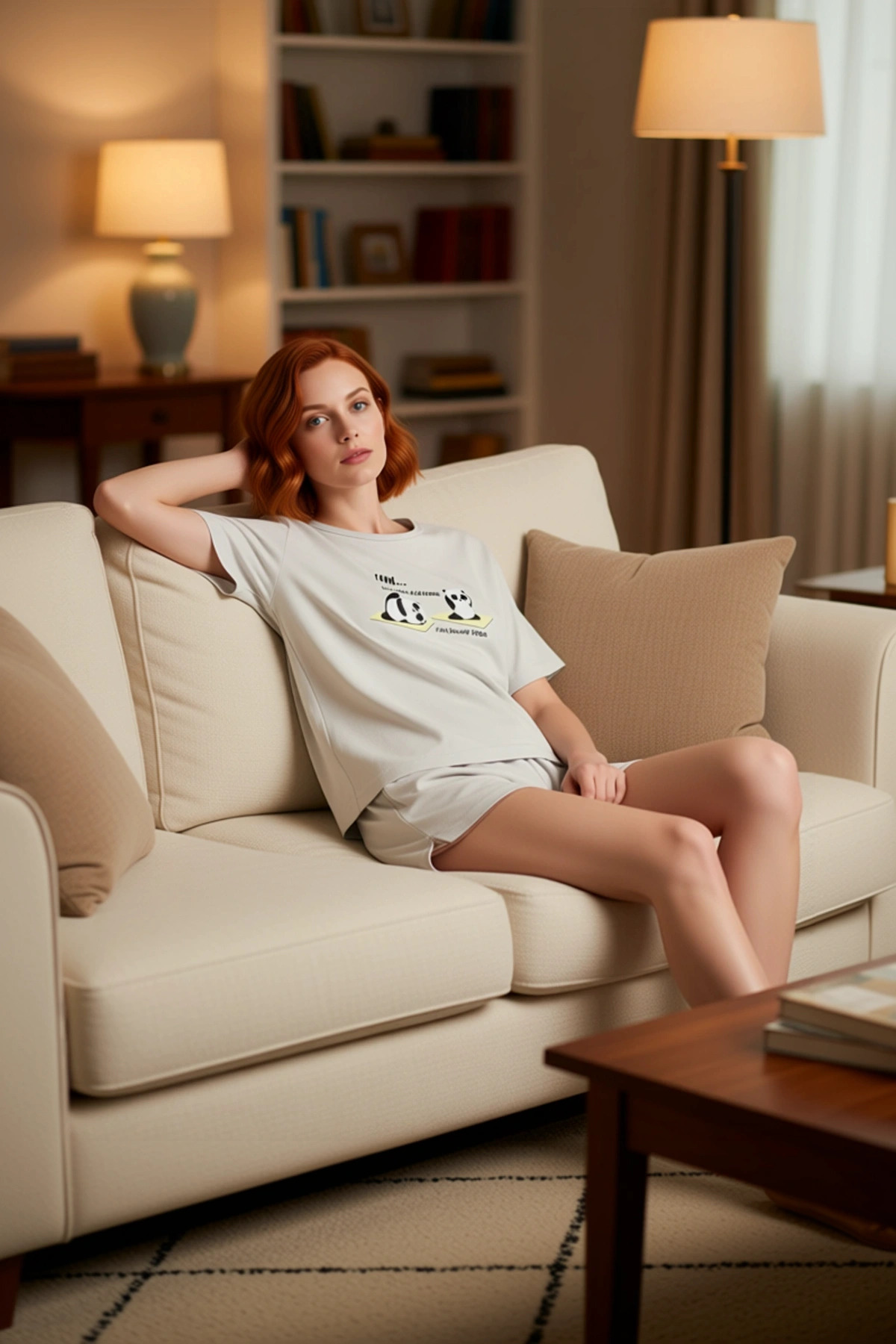 Kadın Yoga Panda Baskılı Şortlu Pijama Takımı Fonksiyonel Dayanıklı Kaliteli Konforlu Spor