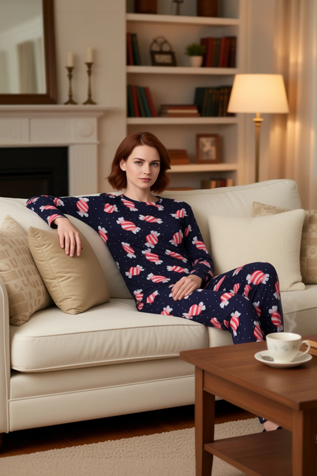 Kadın Kışlık Yılbaşı Temalı Pijama Takımı Fonksiyonel Dayanıklı Kaliteli Konforlu Estetik Şık