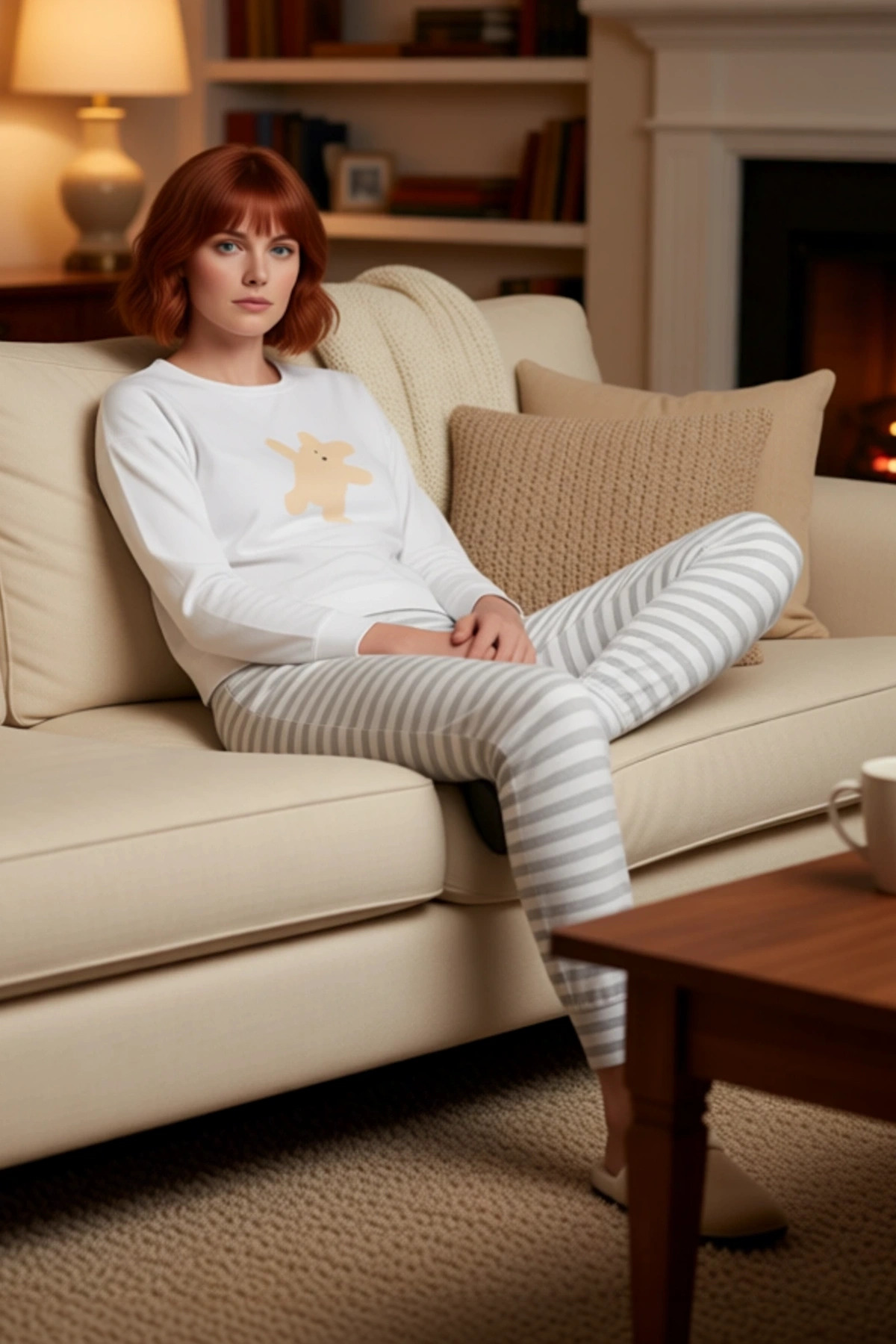 Kadın Ayıcık Desenli Pamuklu Pijama Takımı Lounge Giyim Fonksiyonel Dayanıklı Kaliteli Şık