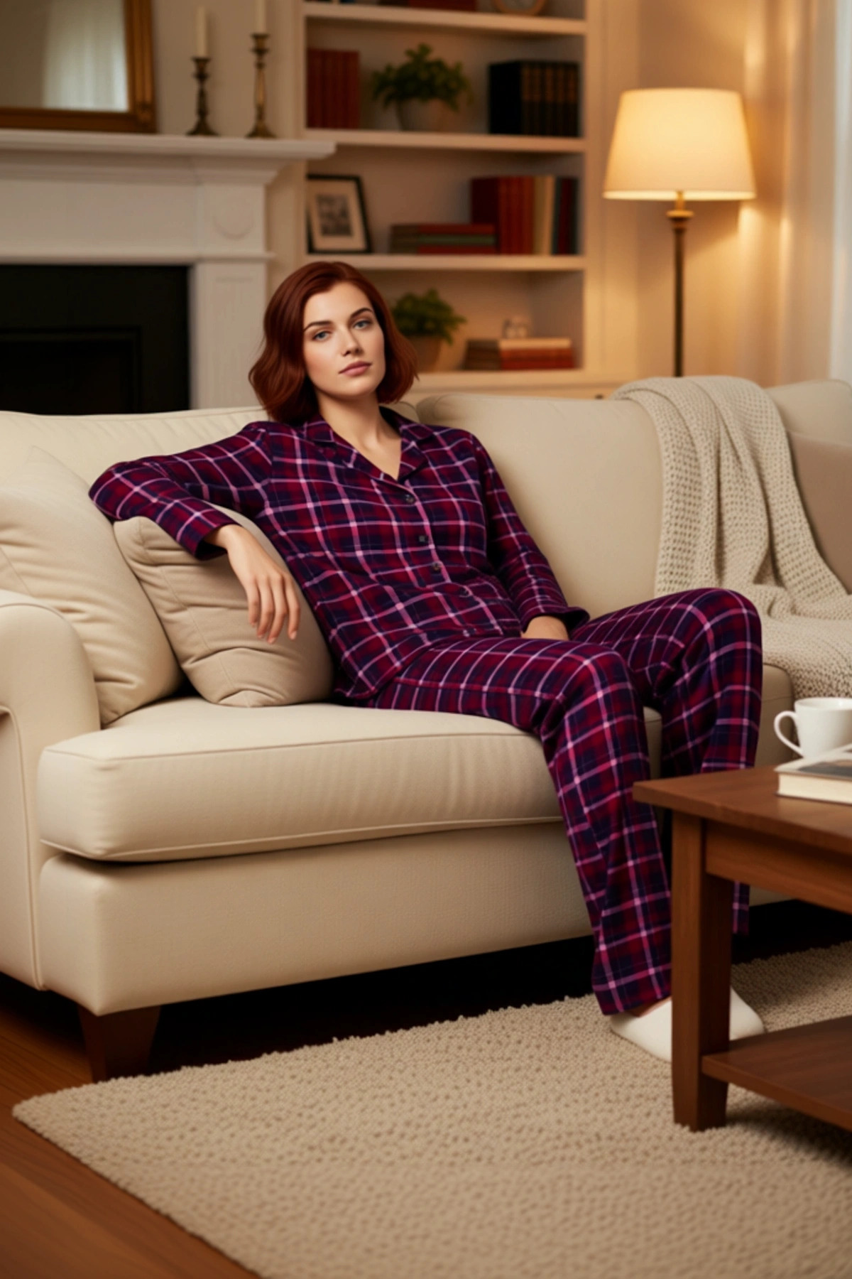 Kadın Ekoseli Gömlek Yaka Konforlu Pijama Takımı Fonksiyonel Dayanıklı Kaliteli Estetik Şık