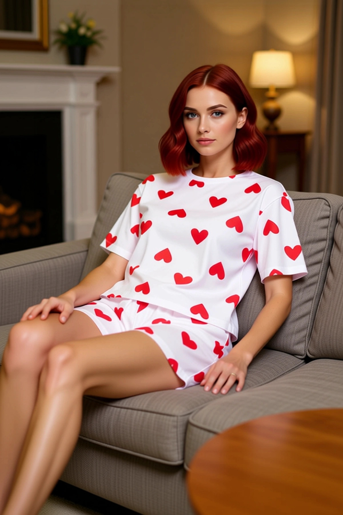 Kadın Puantiye ve Kalp Baskılı Örme Pijama Takımı Fonksiyonel Dayanıklı Kaliteli Konforlu Şık