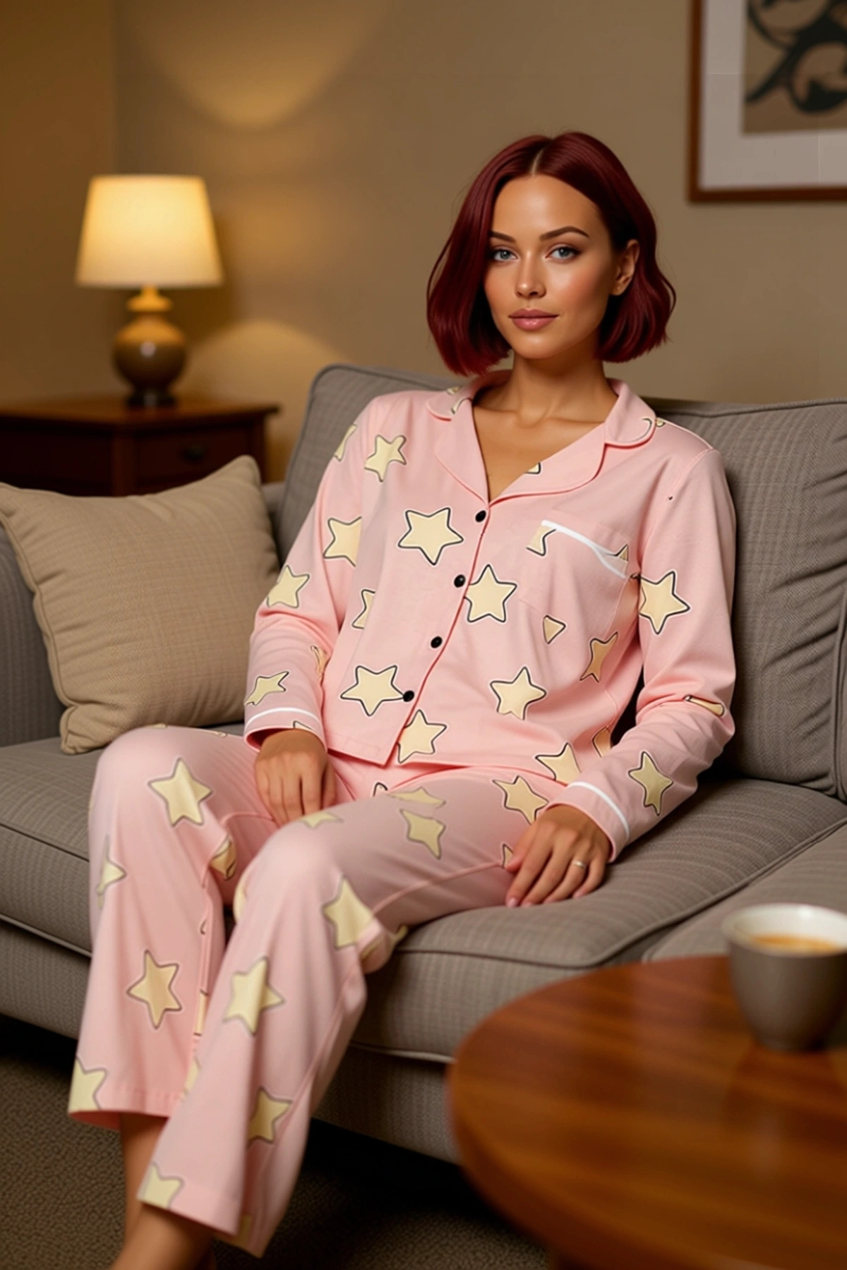 Kadın Yıldızlı Uzun Kollu Pijama Takımı Fonksiyonel Dayanıklı Kaliteli Konforlu Estetik Şık