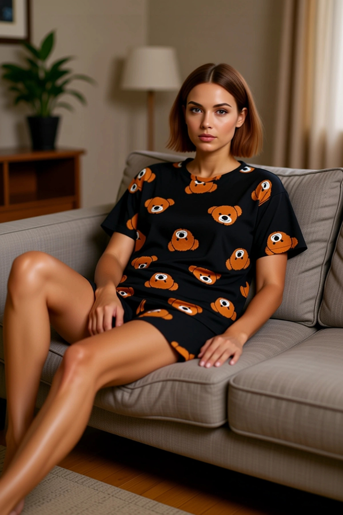 Kadın Ayıcık Desenli Gömlek ve Şort Pijama Seti Fonksiyonel Dayanıklı Kaliteli Konforlu Şık