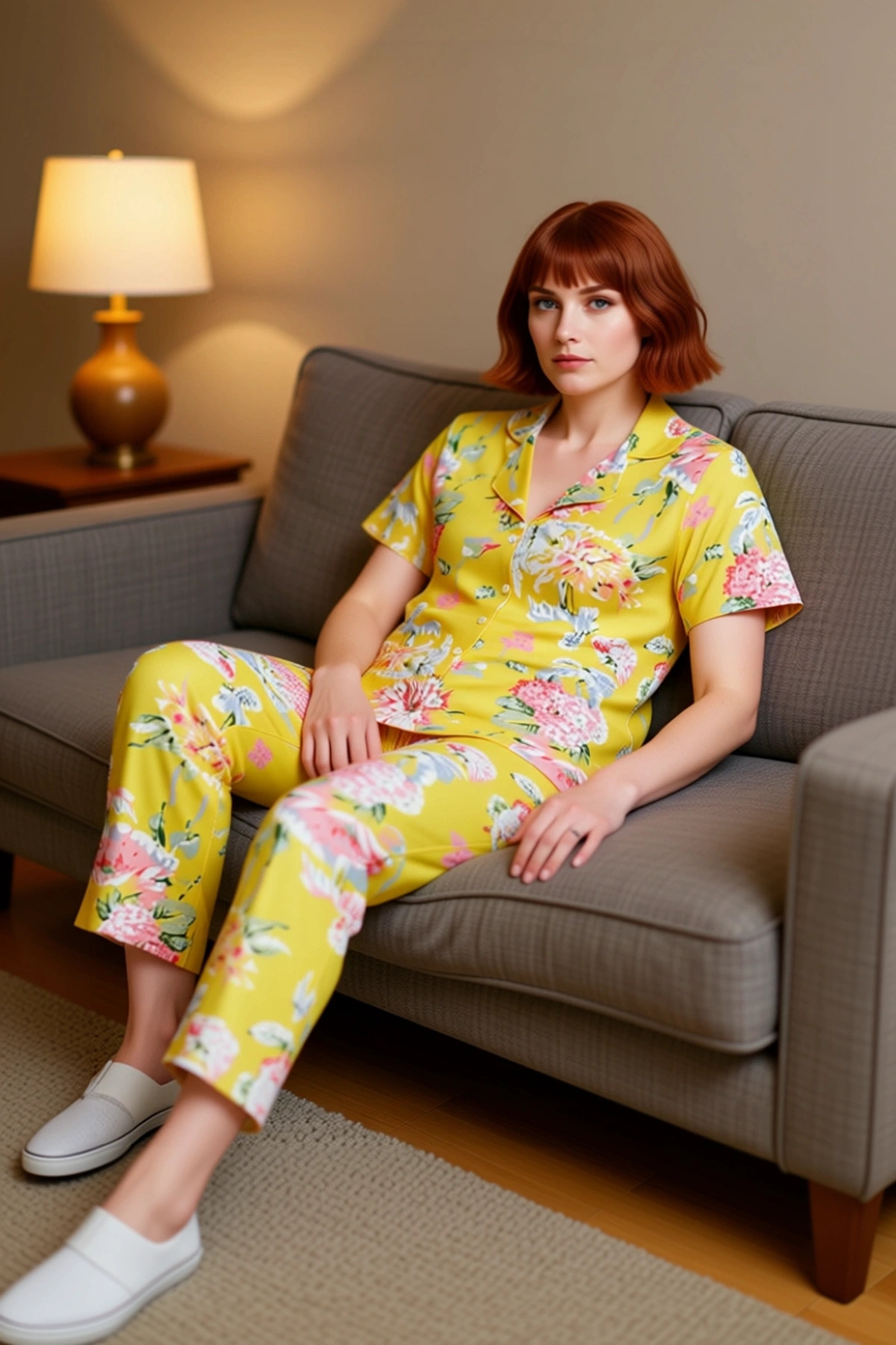 Kadın Güneş Baskılı Gömlek ve Pantolon Pijama Takımı Fonksiyonel Dayanıklı Kaliteli Modern