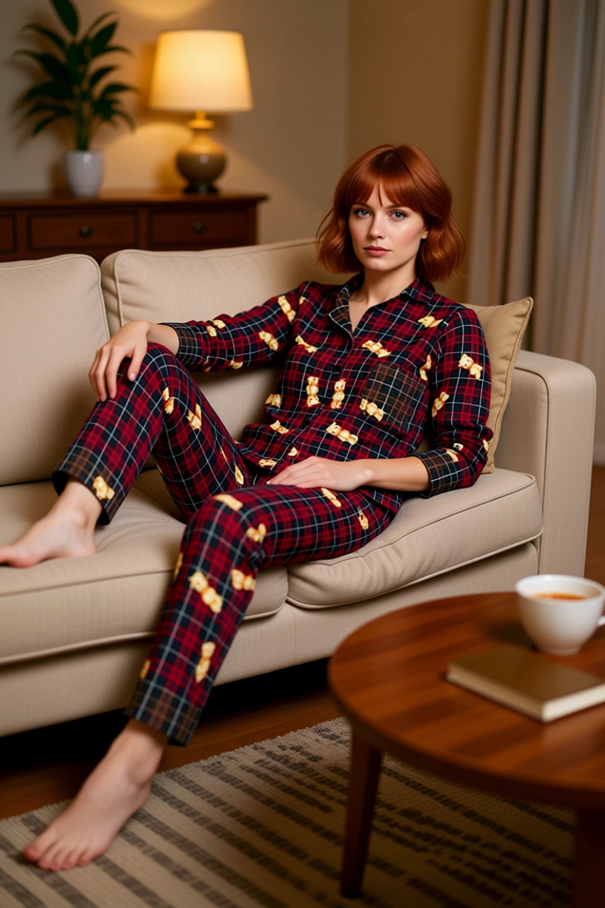 Kadin Ekose Ayici Baskılı Pijama Takımı Gömlek Yaka Fonksiyonel Dayanıklı Kaliteli Estetik