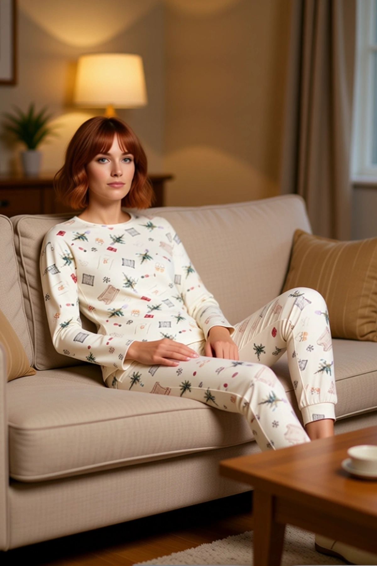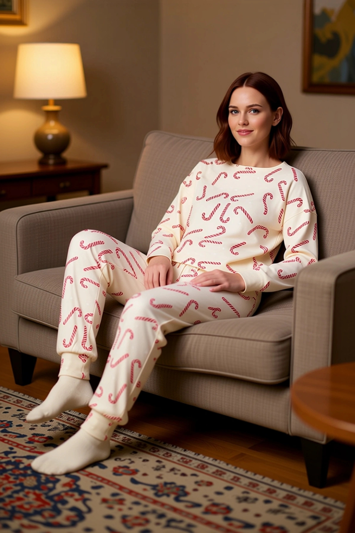 Kadın Yılbaşı Desenli Örme Pijama Takımı Fonksiyonel Dayanıklı Kaliteli Konforlu Estetik Şık