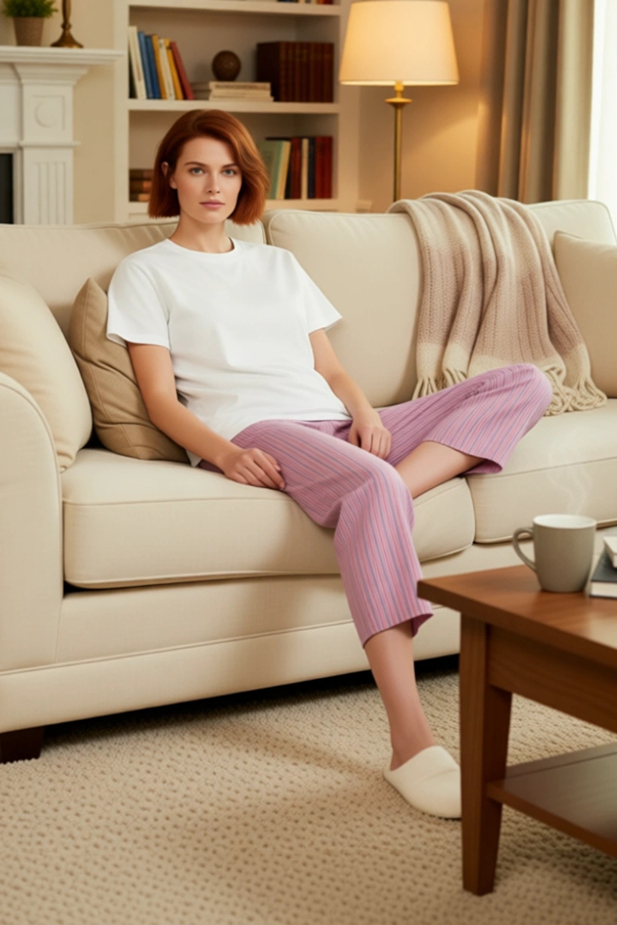 Kadın Çizgili Ev Giyim Pijama Takımı Fonksiyonel Dayanıklı Kaliteli Konforlu Estetik Rahat
