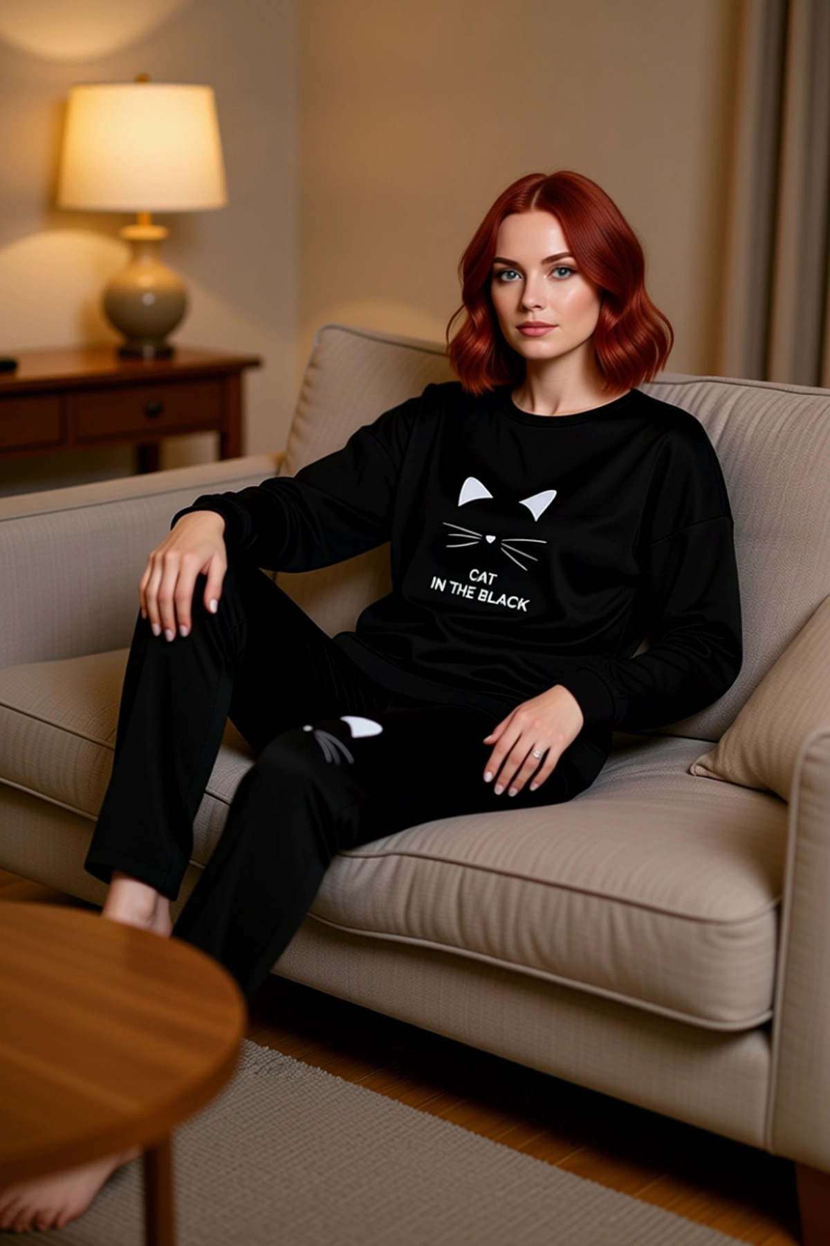 Kedi Temalı Kadın Ev Giyim Takımı Fonksiyonel Dayanıklı Kaliteli Konforlu Estetik Premium Şık