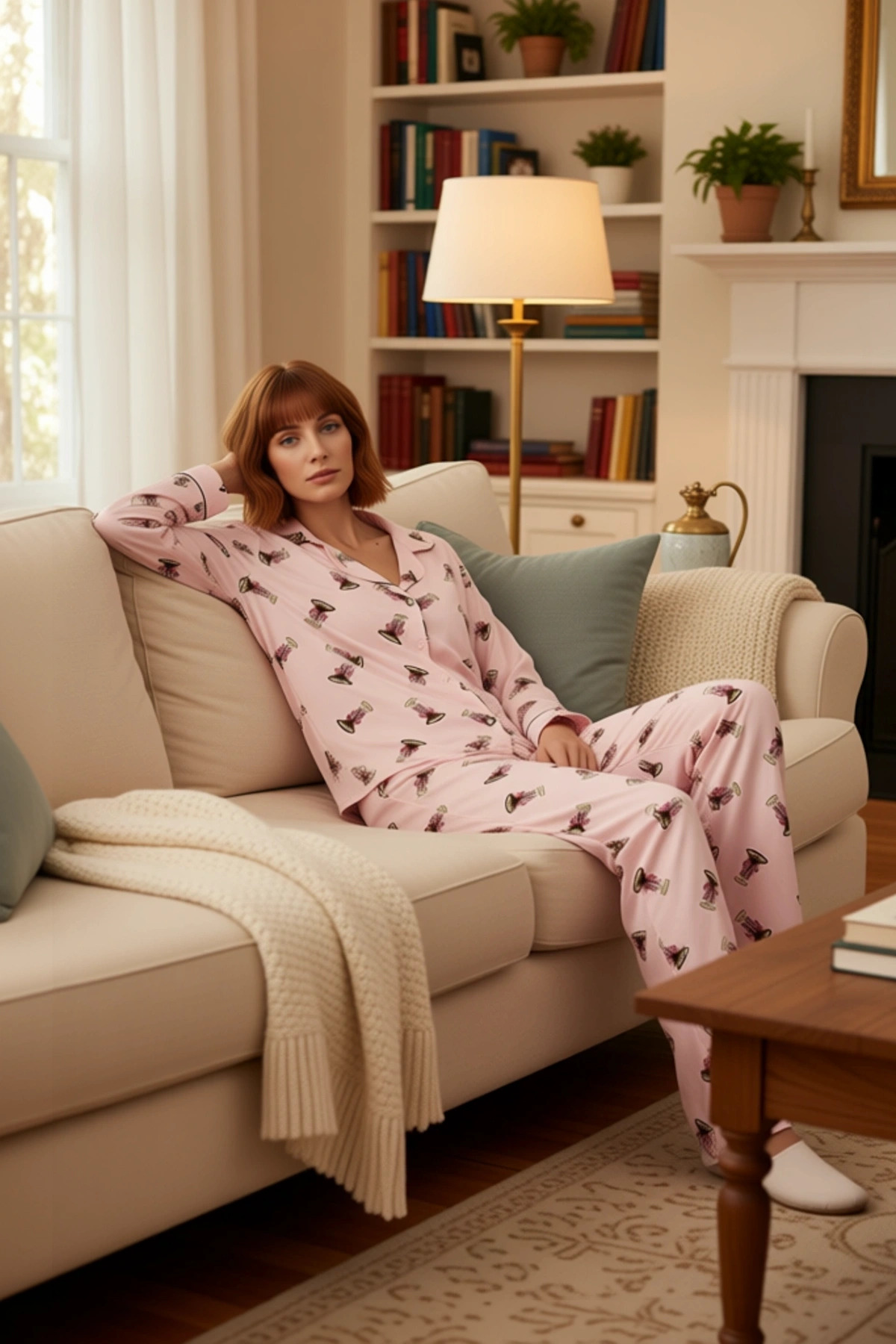 Kadın Baskılı Gömlek Yaka Pijama Takımı Fonksiyonel Dayanıklı Kaliteli Konforlu Estetik Şık
