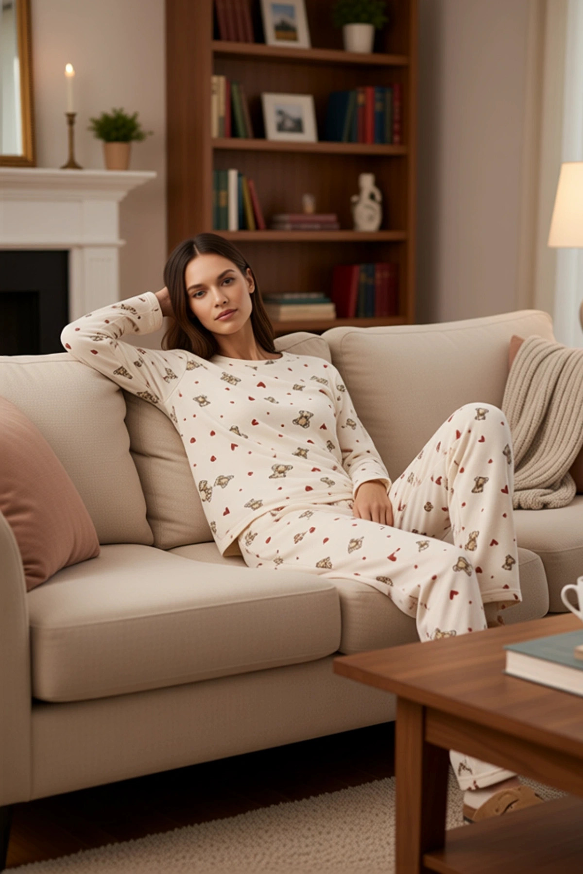 Kışlık Polar Ayıcık Desenli Kadın Pijama Takımı Fonksiyonel Dayanıklı Kaliteli Konforlu Şık