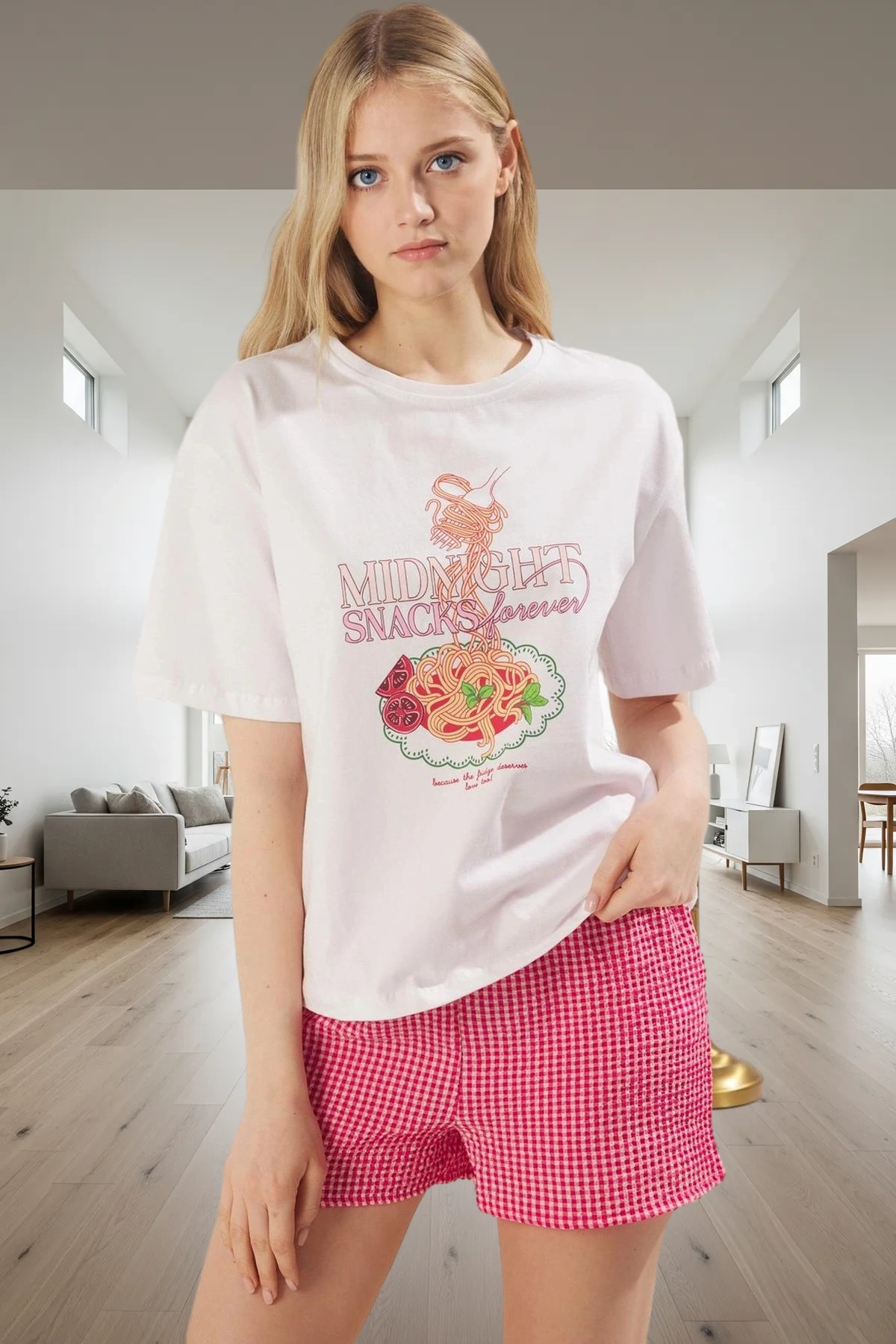Kadın Renkli Meyve Baskılı Gömlek ve Şort Pijama Takımı Fonksiyonel Dayanıklı Kaliteli Şık