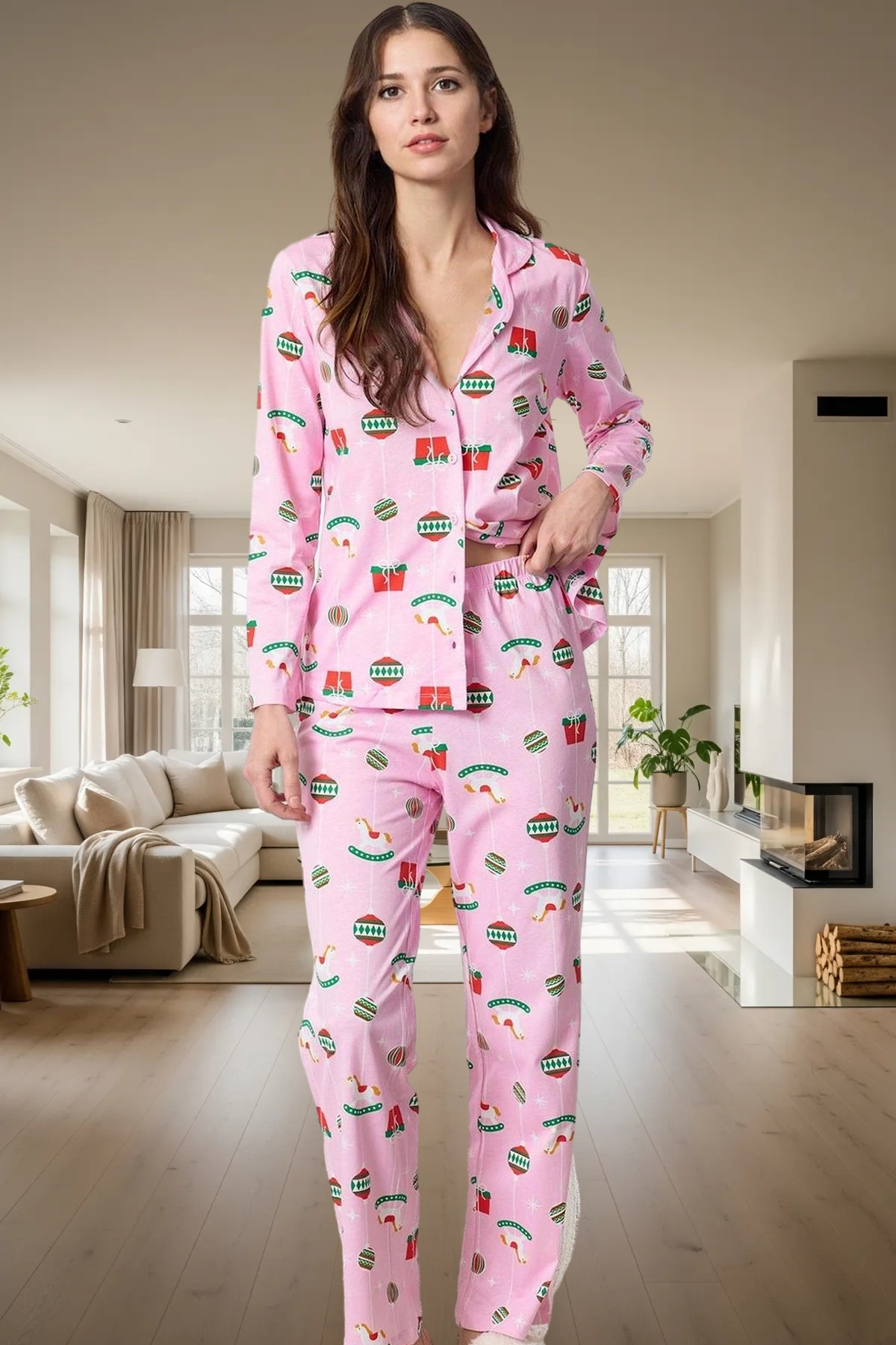 Yılbaşı Temalı Pamuklu Pijama Takımı Rahatlık ve Şıklık Bir Arada Premium Kalite Şık Görünüm