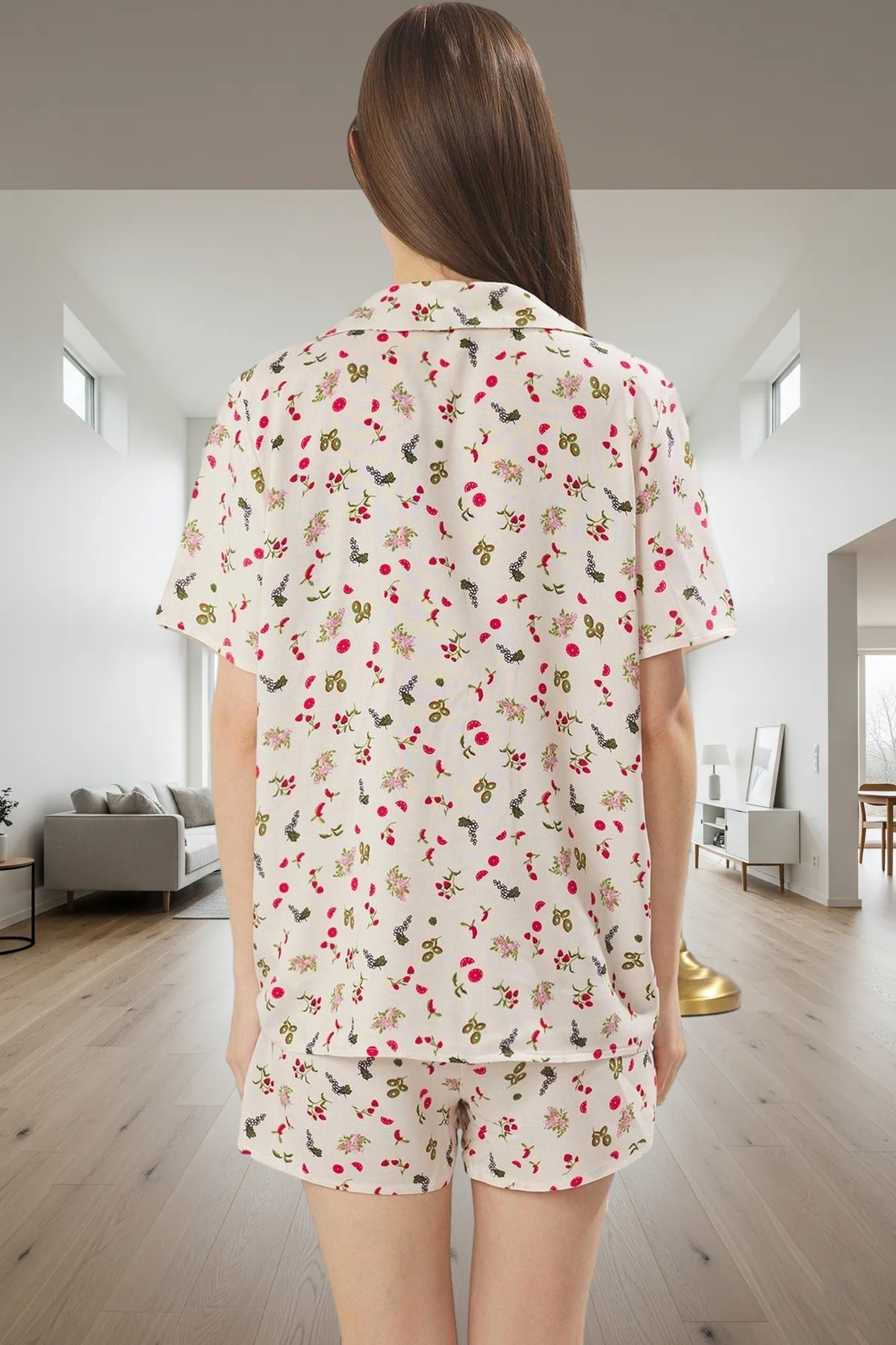 Kadın Kalpli Gömlek ve Şort Pijama Takımı Fonksiyonel Dayanıklı Kaliteli Konforlu Estetik Şık