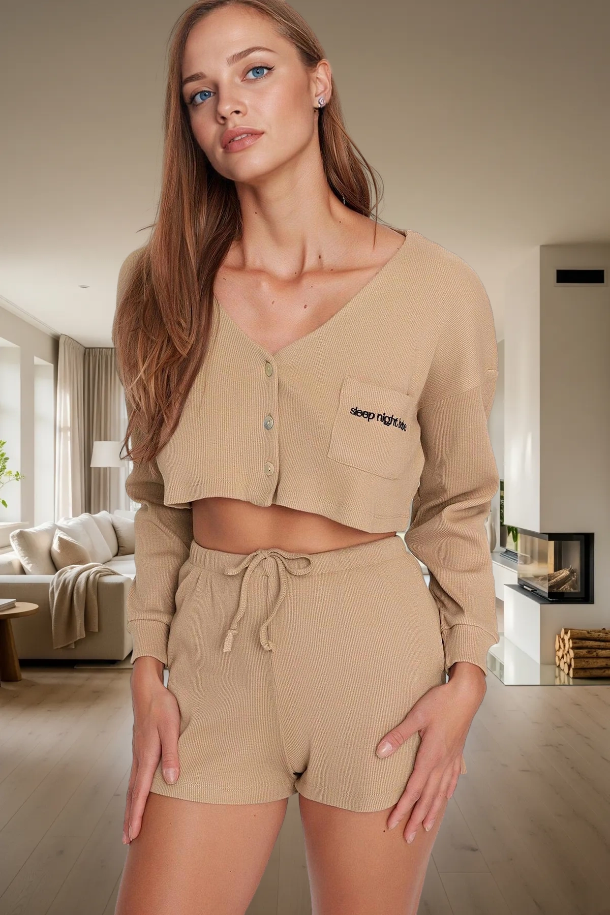 Rahat Pijama Takımı Örme Kumaş Relaxed Kalıp V Yaka Detay Özenle Seçilmiş Zarifane Tasarım