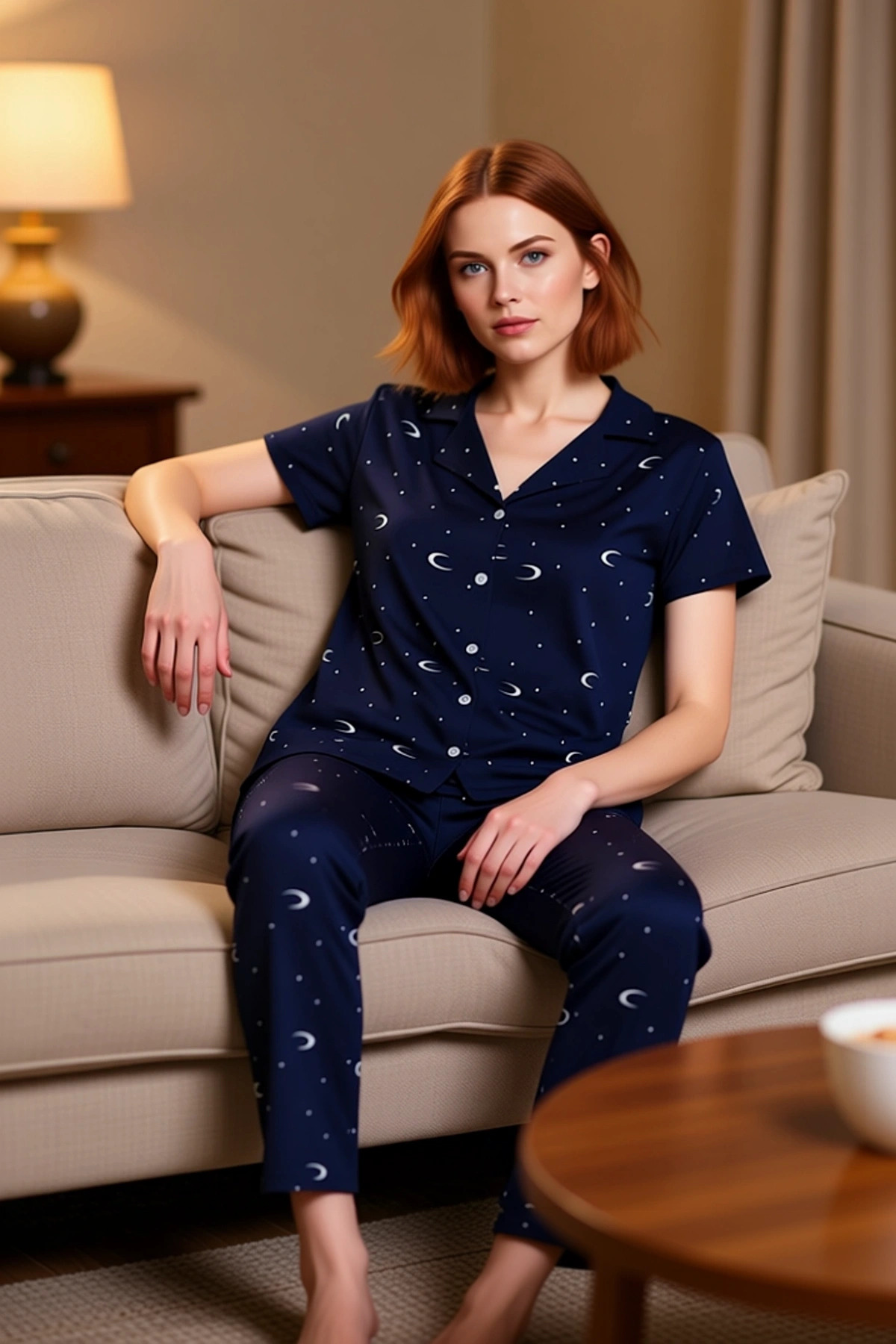 Evde Rahatlık İçin 2’li Pijama Takımı Örme Kumaş Galaksi Desen Özel Tasarım Şık Görünüm