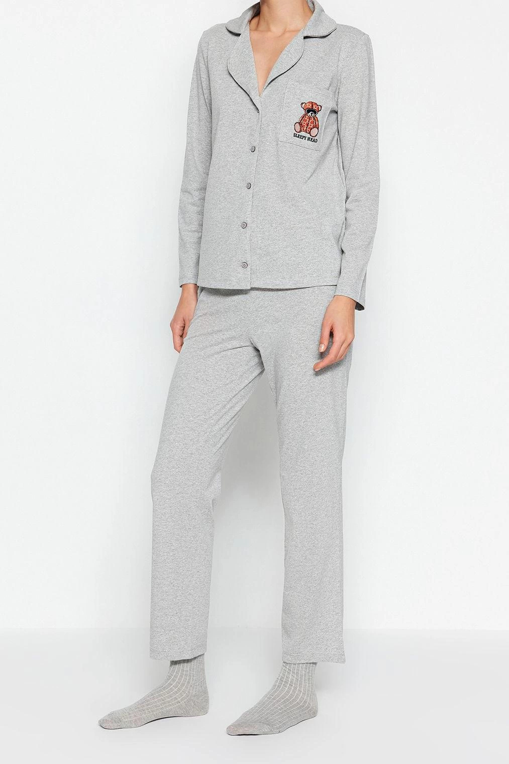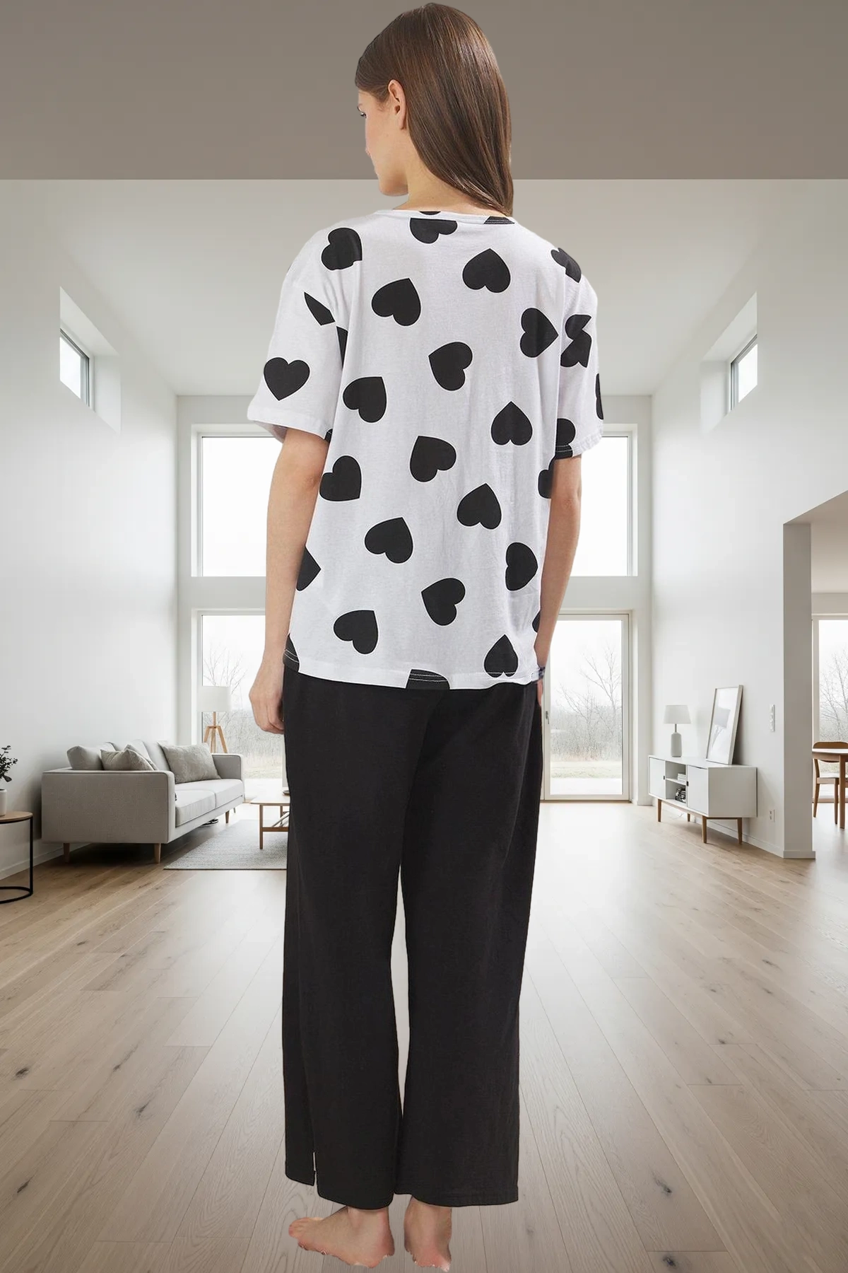 Kadın Kalp Figürlü Gömlek ve Pantolon Pijama Takımı Fonksiyonel Dayanıklı Kaliteli Estetik